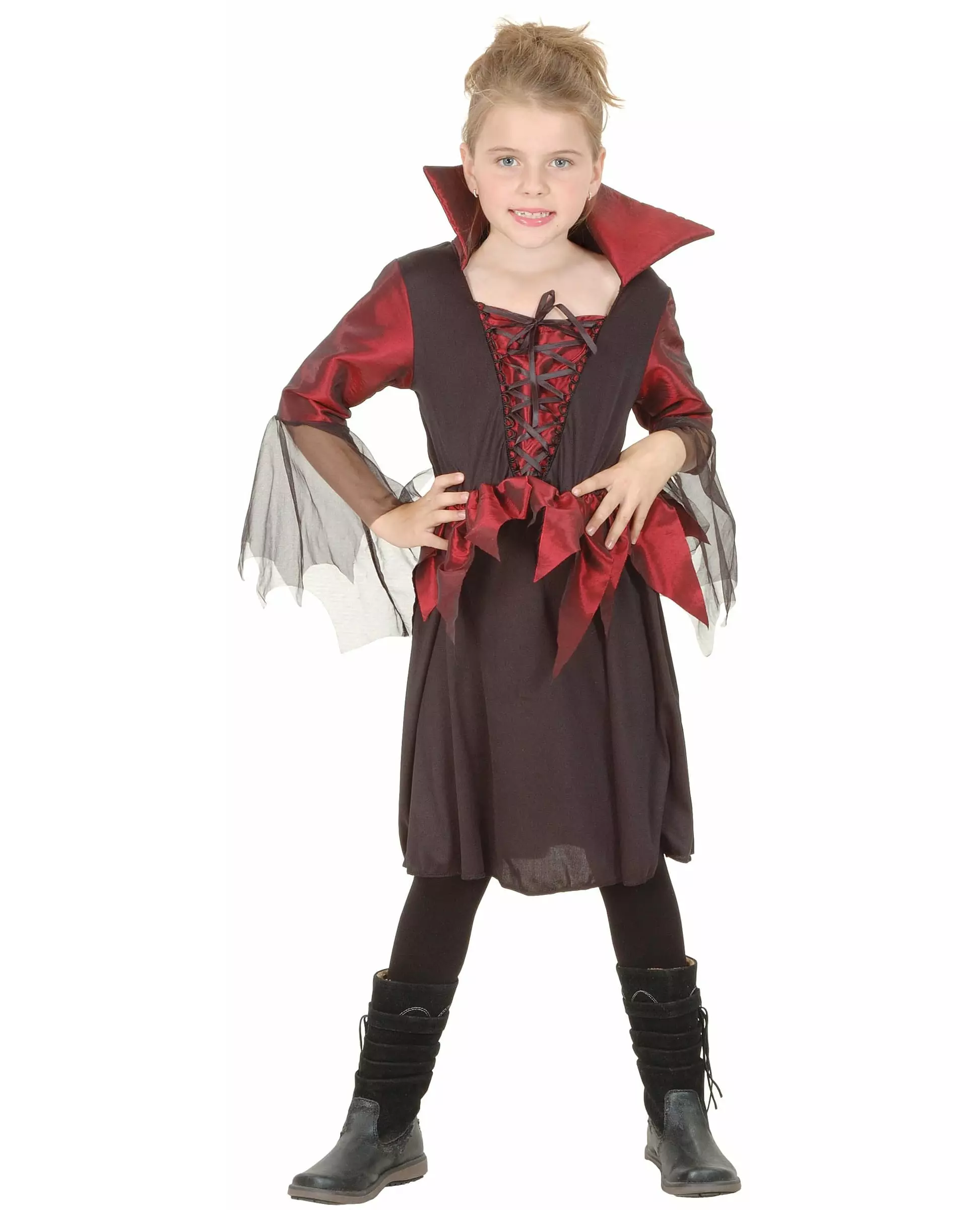 Med snøring og satengeffekt! Dette Halloween-vampyrkostymet for jenter består av en kjole med en halvstiv krage med snøring. Ermene, i likhet med beltet, er laget av stoff med satengeffekt og avsluttes med et utsvingt slør. Et halskjede vil sette den siste finishen på dette vampyrkostymet (sko og strømpebukser er ikke inkludert). Dette kostymet vil gjøre barnet ditt til den søteste vampyren og vil være ideelt for Halloween-fester, karneval eller show. Inkludert tilbehør: Kjole Halskjede Materiale: 100 % polyester Vedlikehold: Renseri