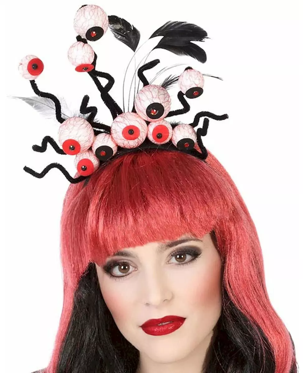 Fall for dette originale Halloween-kostymetilbehøret. Dette pannebåndet for voksne er svart med falske svarte og røde øyne. Disse er ledsaget av chenilletråder og små svarte fjær for en enda sprøere effekt! Dette tilbehøret vil være perfekt for å fullføre Halloween-kostymet ditt på en original og uvanlig måte. Inkludert tilbehør: Pannebånd
