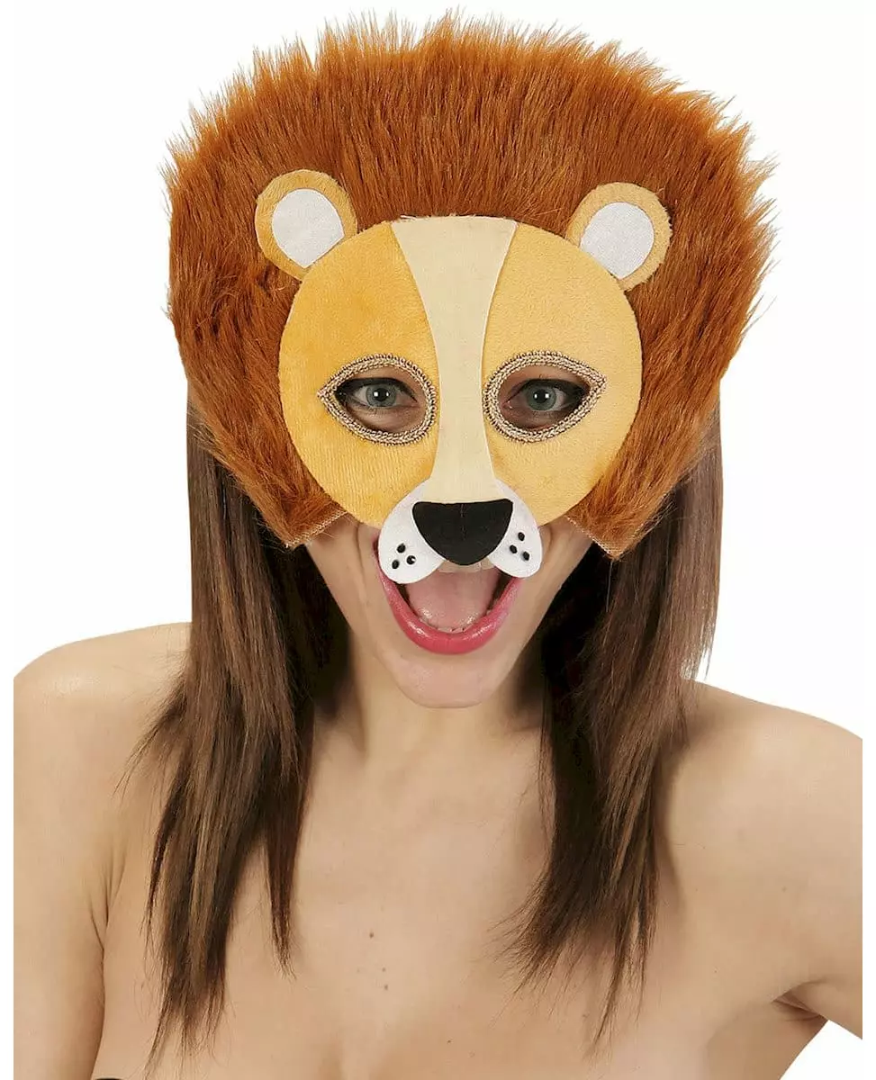 Halvmaske for voksen løve i plysj