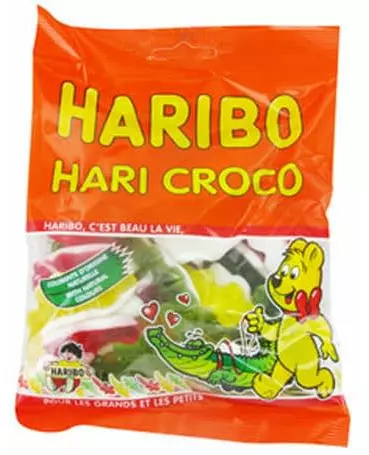 Full av søtsaker! 120 g pose med krokodilleformede vingummigodteri i forskjellige smaker og farger. Ingredienser: glukosesirup; sukker; dekstrose; gelatin; surhetsregulerende middel: sitronsyre; frukt- og plantekonsentrater: saflor, spirulina, eple; invertsukkersirup; aroma; fargestoffer: karminer, lutein; belegningsmidler: hvit og gul bivoks, karnaubavoks. Holdes unna varme og fuktighet.