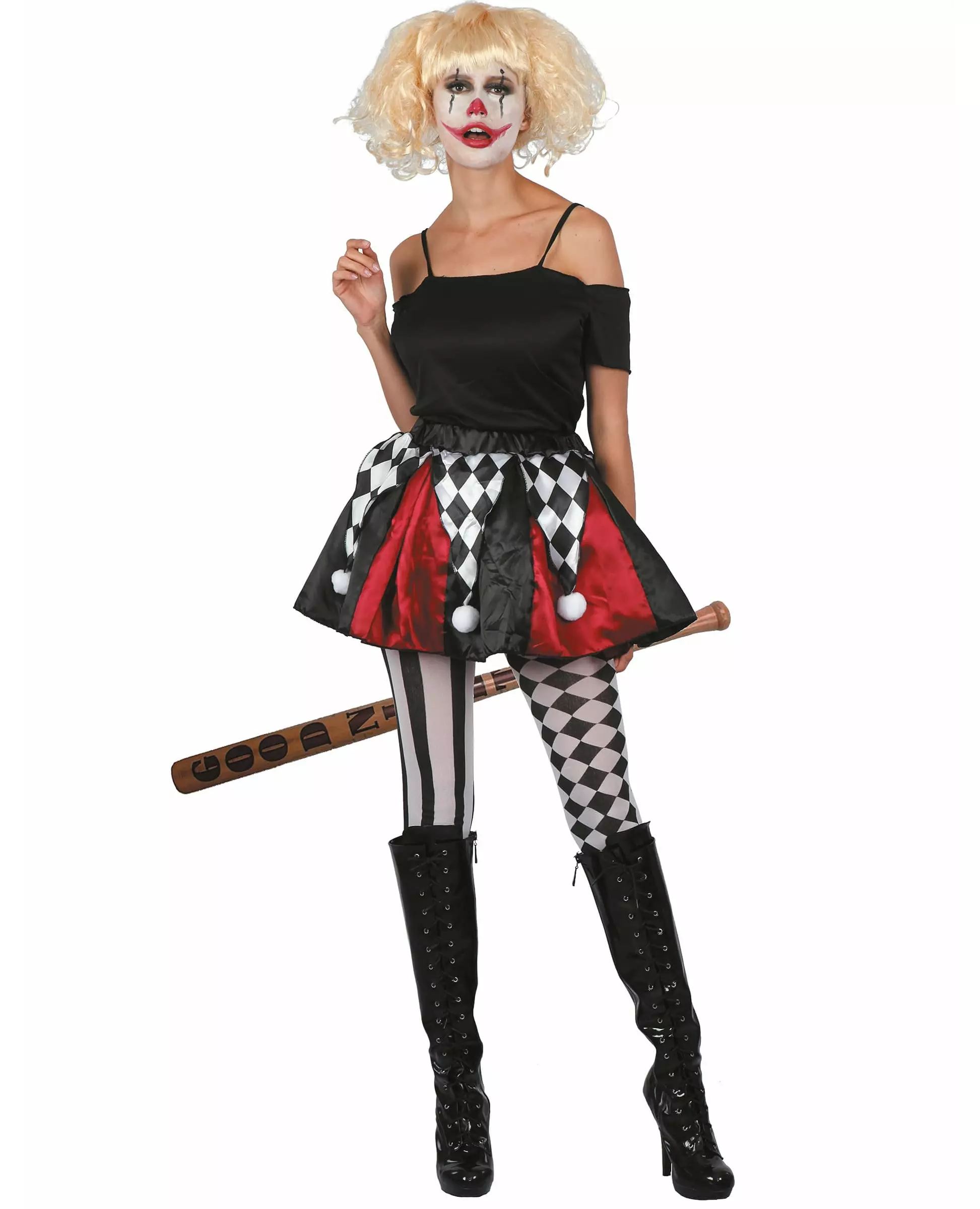 Bli en ond harlekin til Halloween! Dette harlekinskjørtet er for kvinner (kun skjørtet er inkludert). Det er svart og rødt, med svart-hvite rutete tupper. Midjen er elastisk for komfort. Dette skjørtet vil være perfekt for å fullføre harlekinkostymet ditt til Halloween. Inkludert tilbehør: Skjørt Materiale: 100 % polyester Pleie: Håndvask