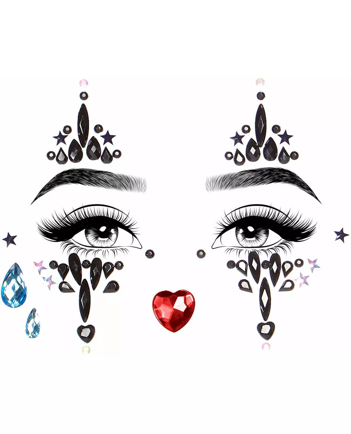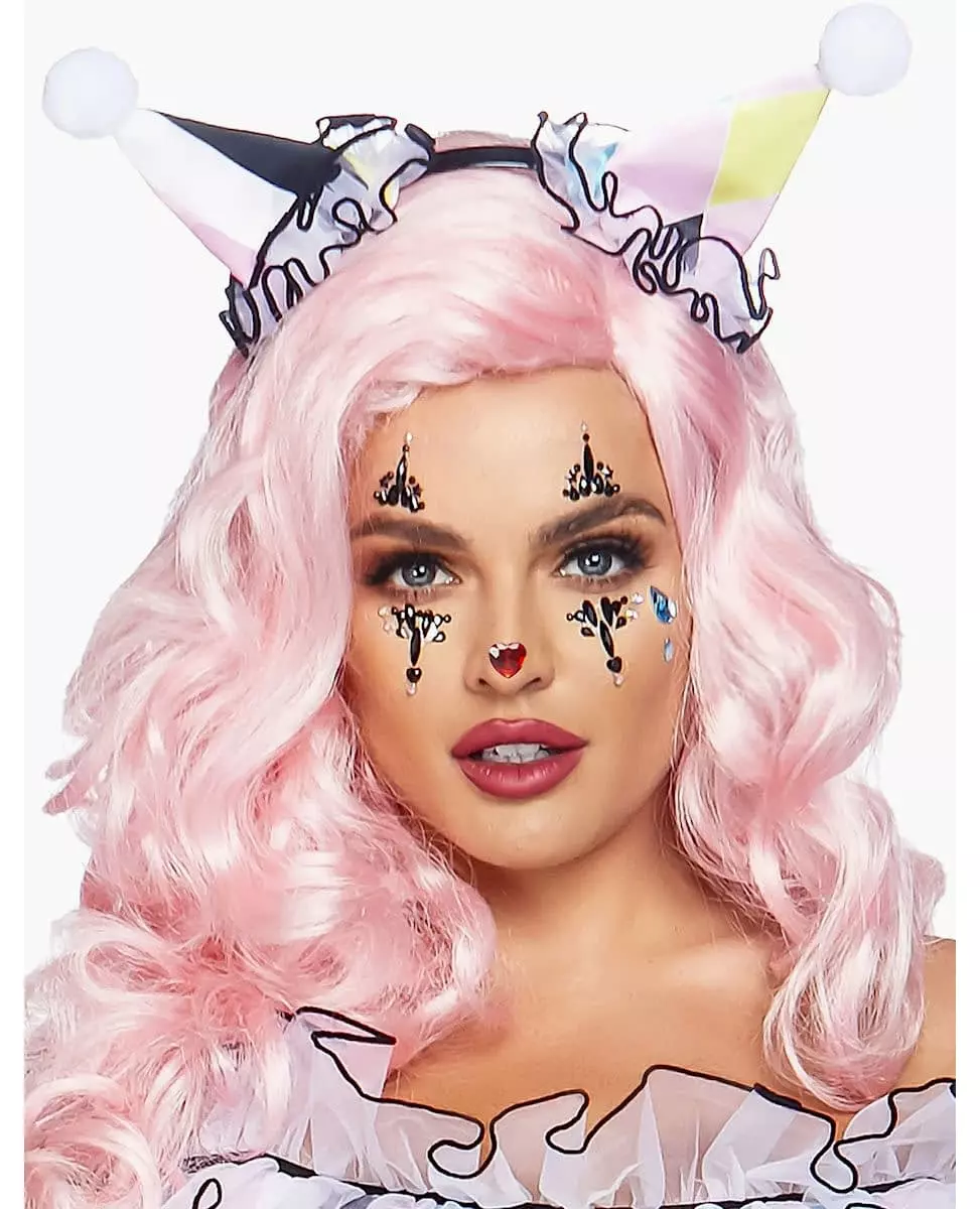 For en original sminke! Denne selvklebende ansiktssmykken med harlekinmotiv er for voksne. Vil du bytte fra tradisjonell klovne- eller harlekinsminke? Vi tilbyr deg en selvklebende rhinstensmykke for et originalt og herlig resultat! Påfør en smykke over og over hvert øye, fest hjertet i midten og de blå rhinstenene for et fantastisk og raskt resultat takket være den gjennomsiktige filmen som forbinder rhinstenene. En enkel sminke med et blendende resultat på bare noen få sekunder? Det er mulig takket være disse ansiktssmykkene, perfekte for et karneval eller en kostymefest med sirkus- og klovnetema. Inkludert tilbehør: 1 ark med rhinstener