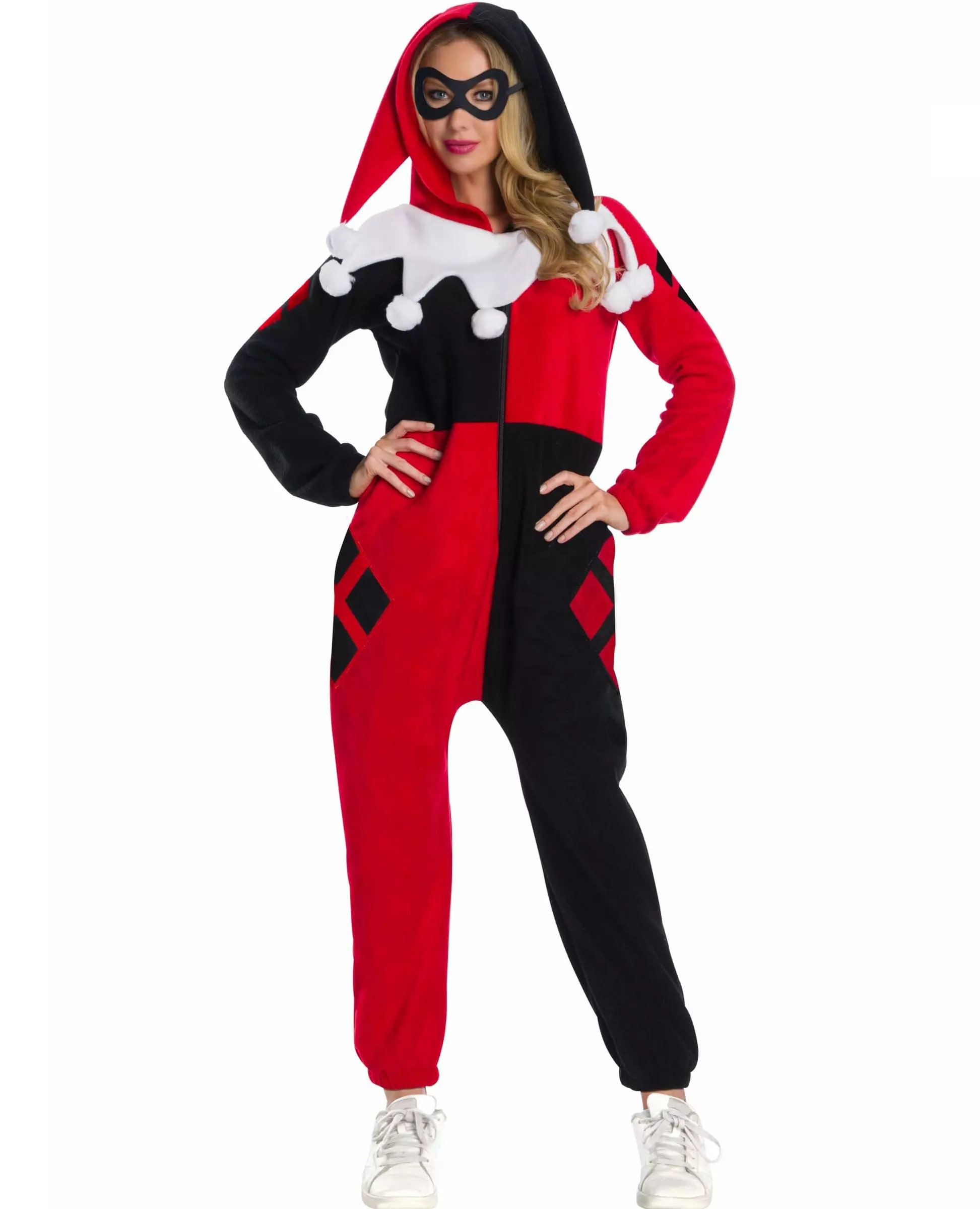 Gå inn i Harley Quinns sko med denne jumpsuiten. Dette Harley Quinn-kostymet for kvinner er offisielt lisensiert. Det består av en jumpsuit og en maske (sko ikke inkludert). Den plysjaktige jumpsuiten er svart og rød. Den har en hette med pigger, for å imitere en harlekinhatt. En hvit piggete krage er også til stede. Pomponger er til stede på enden av hver pigg. Denne jumpsuiten lukkes foran med en glidelås. Masken er en svart maske med store åpninger for øynene. Den bæres med en strikk. Dette kostymet vil være perfekt for å late som om du er Harley Quinn på karnevalsdagen. Tilbehør inkludert: Ulvejumpsuit Materiale: 100 % polyester Pleie: Håndvask