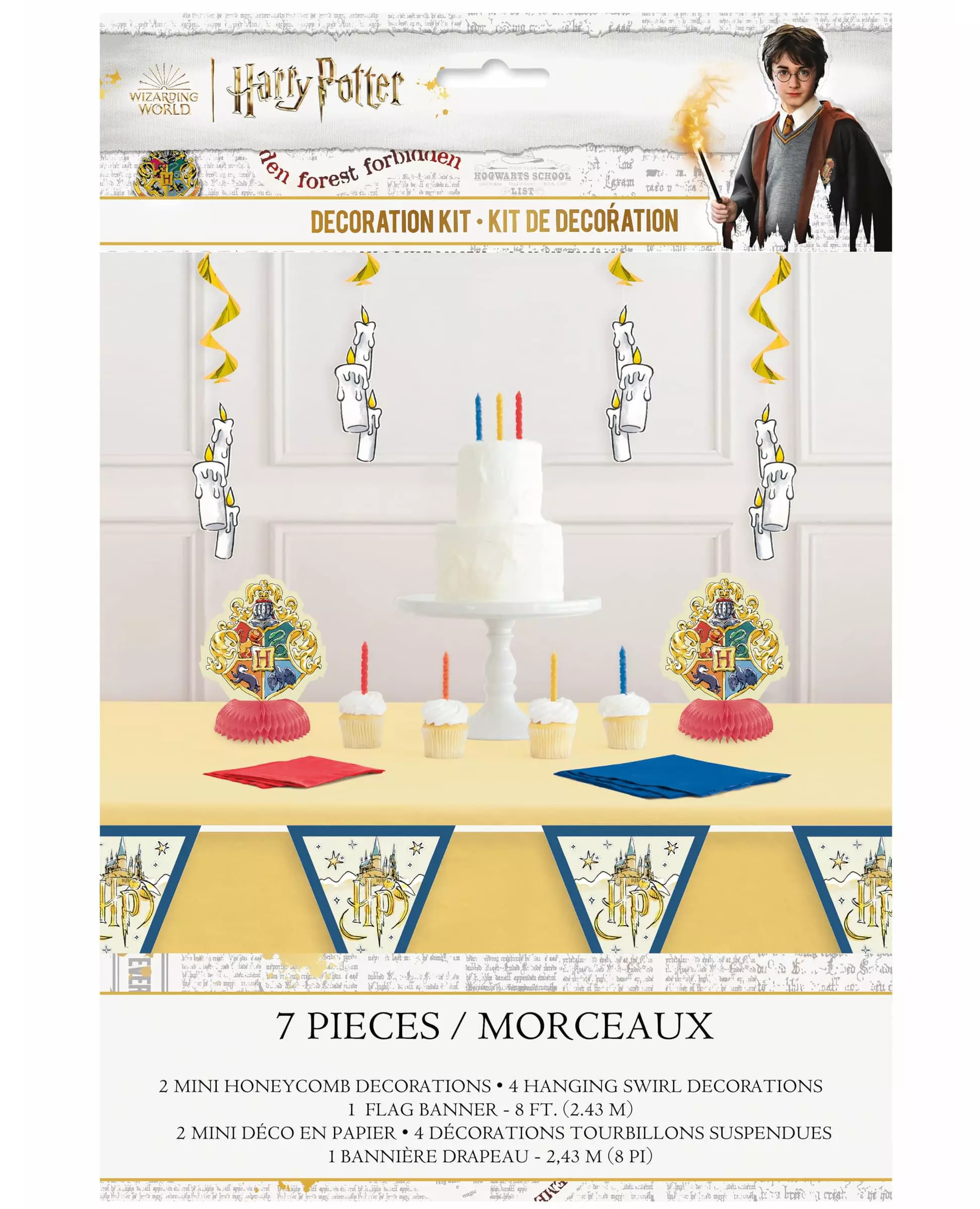 Et komplett sett for en vakker dekorasjon! Dette offisielt lisensierte Harry Potter®-dekorasjonssettet inneholder 7 deler. De 7 delene er som følger: - 2 mini-papirdekorasjoner - 4 hengende virveldekorasjoner - 1 flaggbanner (2,43 m) Skaff deg dette komplette settet for å perfeksjonere romdekorasjonen din under et utkledningsarrangement med trollmannstema! Inkludert tilbehør: 2 mini-papirdekorasjoner 4 hengende virveldekorasjoner 1 flaggbanner (2,43 m) Materiale: Papir, papp