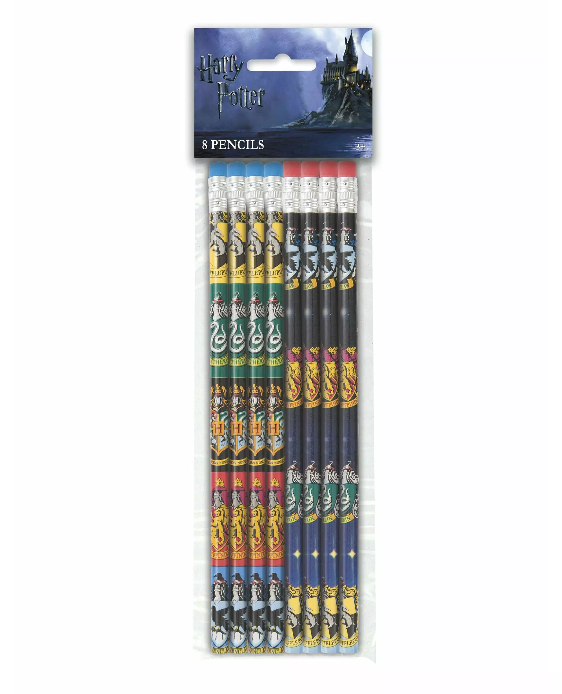 Perfekt å gi til en fan av den mest berømte trollmannen! Dette settet inneholder 8 offisielt lisensierte Harry Potter®-blyanter. De har et lite viskelær på enden. De er dekorert med symbolene til de fire husene i hekseskolen: Griffing-løven, Håsblås-ballongen, Slytherin-slangen og Ravnklo-ørnen. Disse blyantene vil være perfekte å gi til barnet ditt som er en fan av Harry Potter®-sagaen! Unik festlogo. Inkludert tilbehør: 8 blyanter Materiale: Tre, grafitt, metall Tre, grafitt, metall