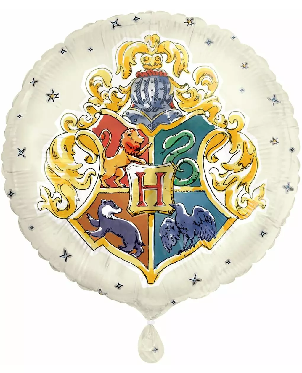 Magiskolen kommer hjem til deg! Denne folieballongen er offisielt lisensiert av Harry Potter™. Den måler omtrent 45 cm og har våpenskjoldet til den berømte hekseskolen, inkludert symbolene til de fire husene: Griffing med løven, Slytherin med slangen, Ravnklo med ørnen og Håsblås med grevlingen. Fullfør interiørdekorasjonen din med denne ballongen til barnets bursdag eller til et utkledningsarrangement som karneval! Inkludert tilbehør: 1 folieballong Materiale: Aluminium Vedlikehold: Ikke vask