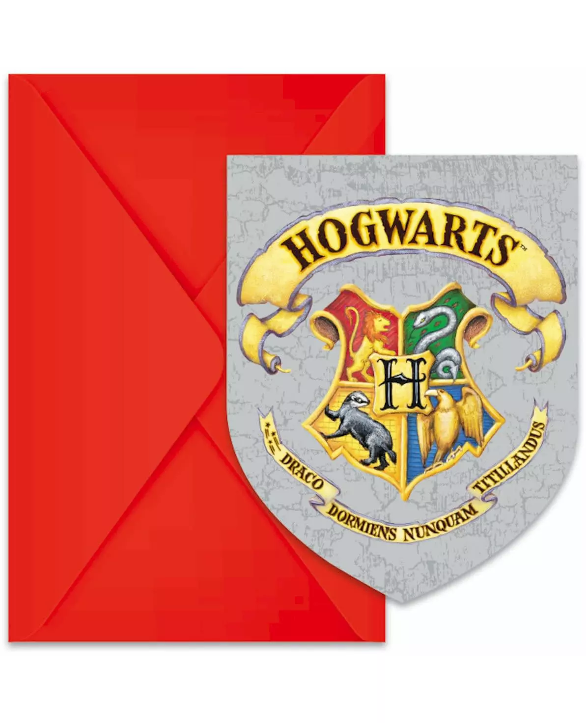 Kort sendt av Hedwig! Dette settet inneholder 6 invitasjonskort med 6 konvolutter, offisielt lisensiert av Harry Potter®. Invitasjonskortene er laget av papp. De måler omtrent 14,5 cm lange og 9,5 cm brede. De er dekorert med det berømte Galtvort-brystplaten som betyr «Galtvort». Konvoluttene er laget av papir og er røde. Dette settet vil være perfekt for å invitere alle vennene dine til en bursdagsfest, karneval eller andre arrangementer relatert til den berømte trollmannsskolen på Galtvort! Inkludert tilbehør: 6 invitasjonskort 6 konvolutter Materiale: Papir, papp