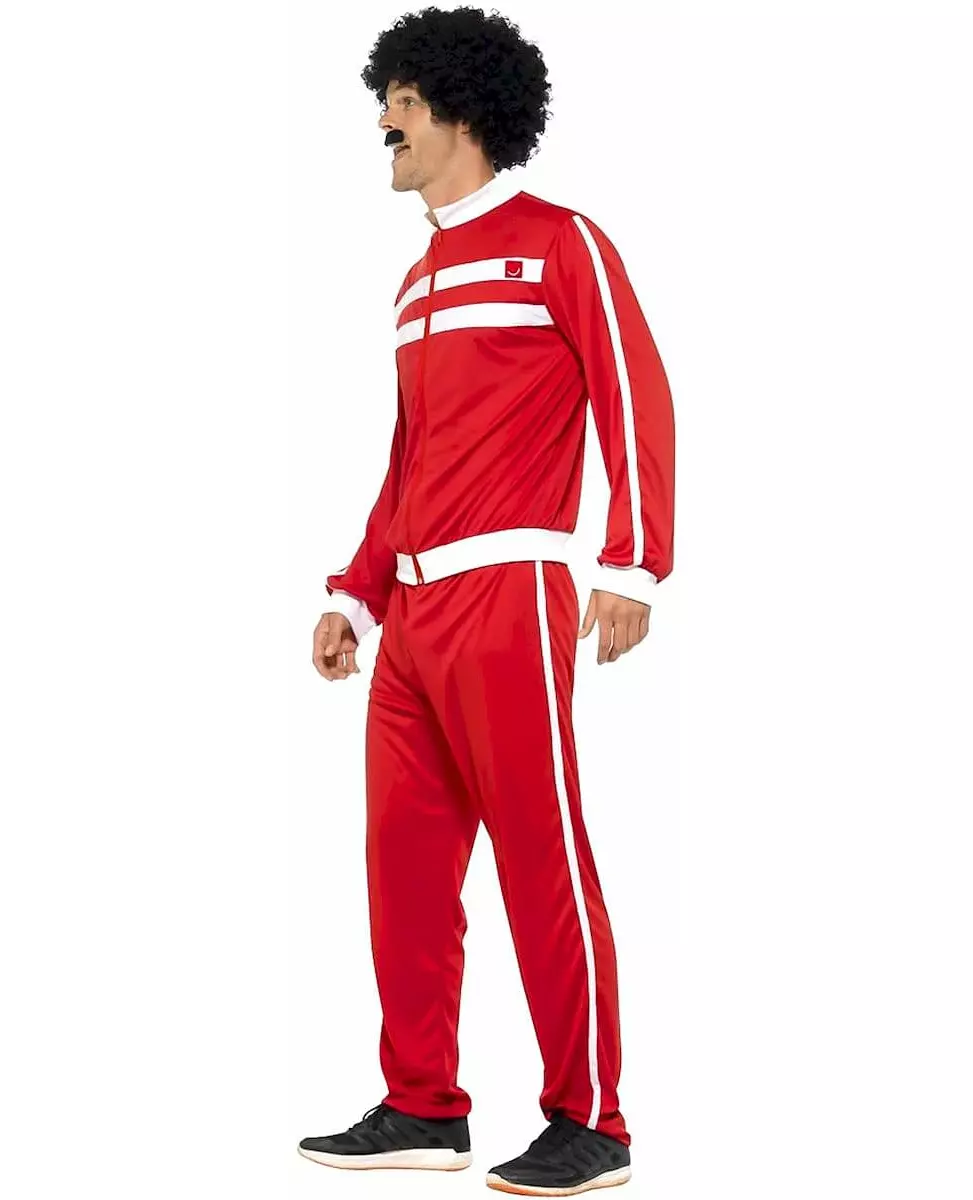 Hyll 80-tallet i denne retro-treningsdressen. Dette 80-tallskostymet for menn består av en jakke og bukser (parykk, bart og sko er ikke inkludert). Jakken er rød med hvite striper. Den lukkes med glidelås foran. Treningsbuksene er røde med en hvit stripe på siden. De har en elastisk midje. Dette kostymet vil være perfekt for å gi deg selv en 80-tallsfølelse til en retrofest. Inkludert tilbehør: Jakke Bukser Materiale: 100 % polyester Vedlikehold: Håndvask