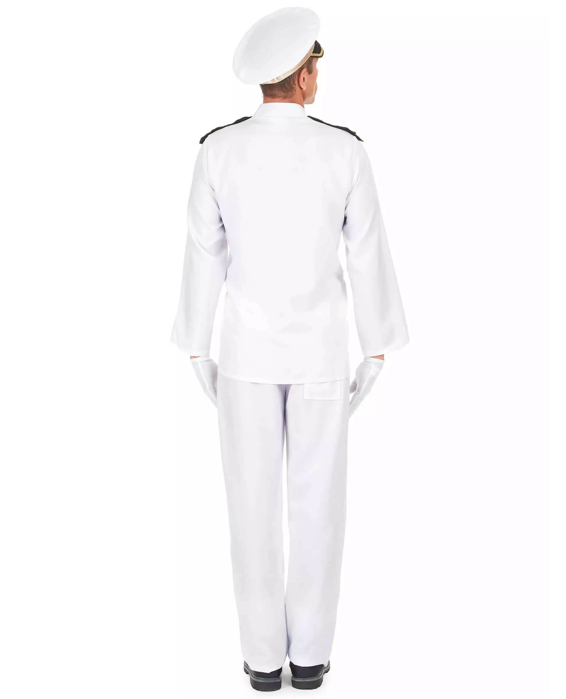 Stå vakt! Dette marineoffiserkostymet inkluderer en jakke, bukser, hansker og en lue. Uniformen er laget av tykt hvitt stoff som festes med gullknapper. Overkroppen er dekorert med et marinemerke, og flette er sydd til skuldrene. De hvite buksene har en elastisk linning. Luen er laget av det samme hvite stoffet som resten av kostymet. Visiret er laget av skum og holder seg lett på plass. En bøyle vil fungere som en ramme. Til slutt vil de tynne hvite hanskene fullføre dette svært stilige kostymet. Du vil garantert bli forvekslet med en ekte marineoffiser i dette kostymet til karneval eller en utkledningsfest! Inkludert tilbehør: Jakke Bukser Lue 2 Hansker Materiale: 100 % polyester Vedlikehold: Håndvask
