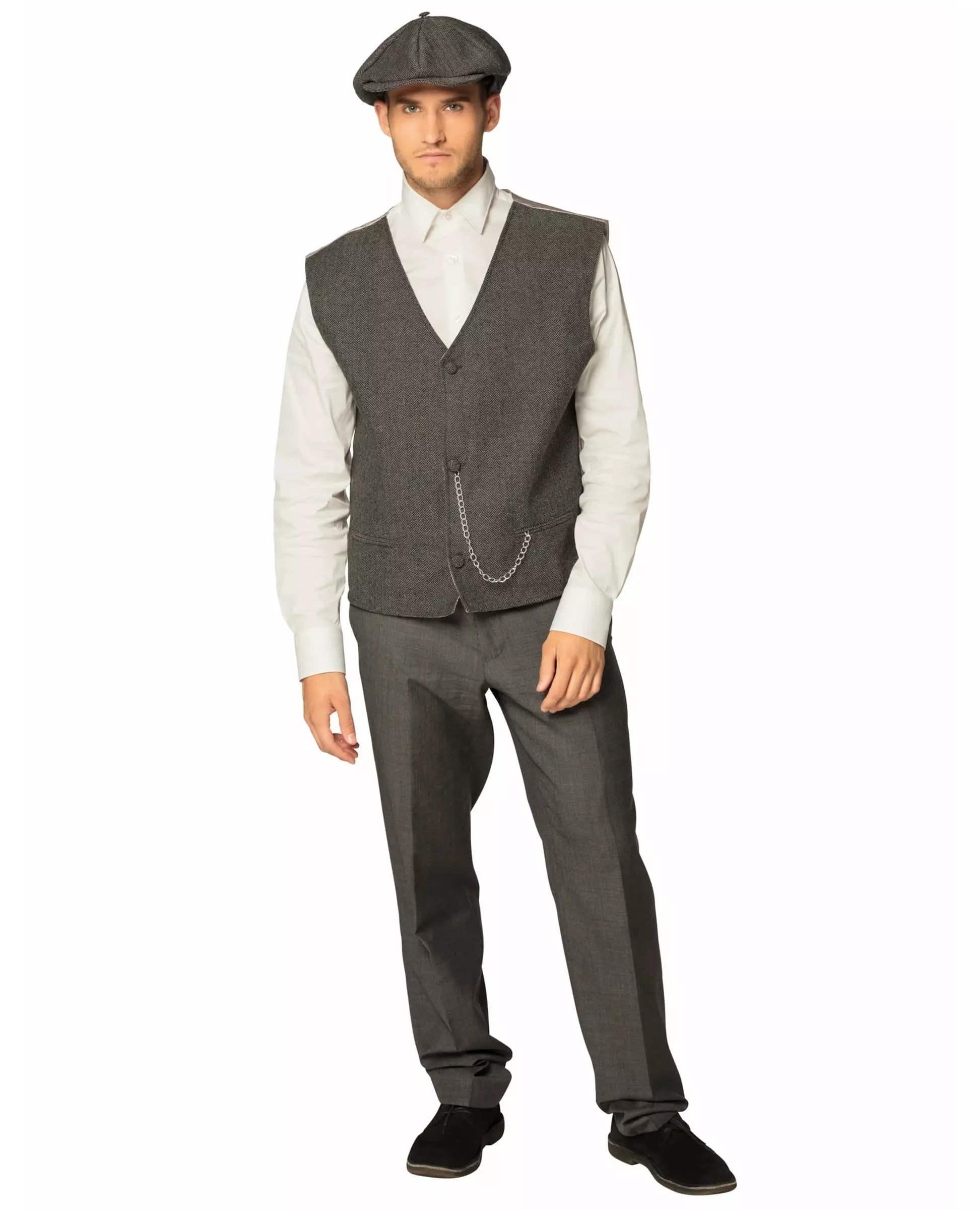 En ekte gentleman! Dette 1920-talls kostymesettet er for menn. Det inneholder en caps og en vest. Capsen er grå og vil passe perfekt til resten av antrekket. Vesten, også grå, vil passe godt til figuren din og vil være behagelig å ha på seg gjennom kvelden. Den har også en liten sølvfarget kjede samt tre knapper i midten og to falske lommer. Fullfør antrekket ditt med et 1920-tallstema for en temakveld! Inkludert tilbehør: Capsvest Materiale: 100 % polyester Pleie: Håndvask