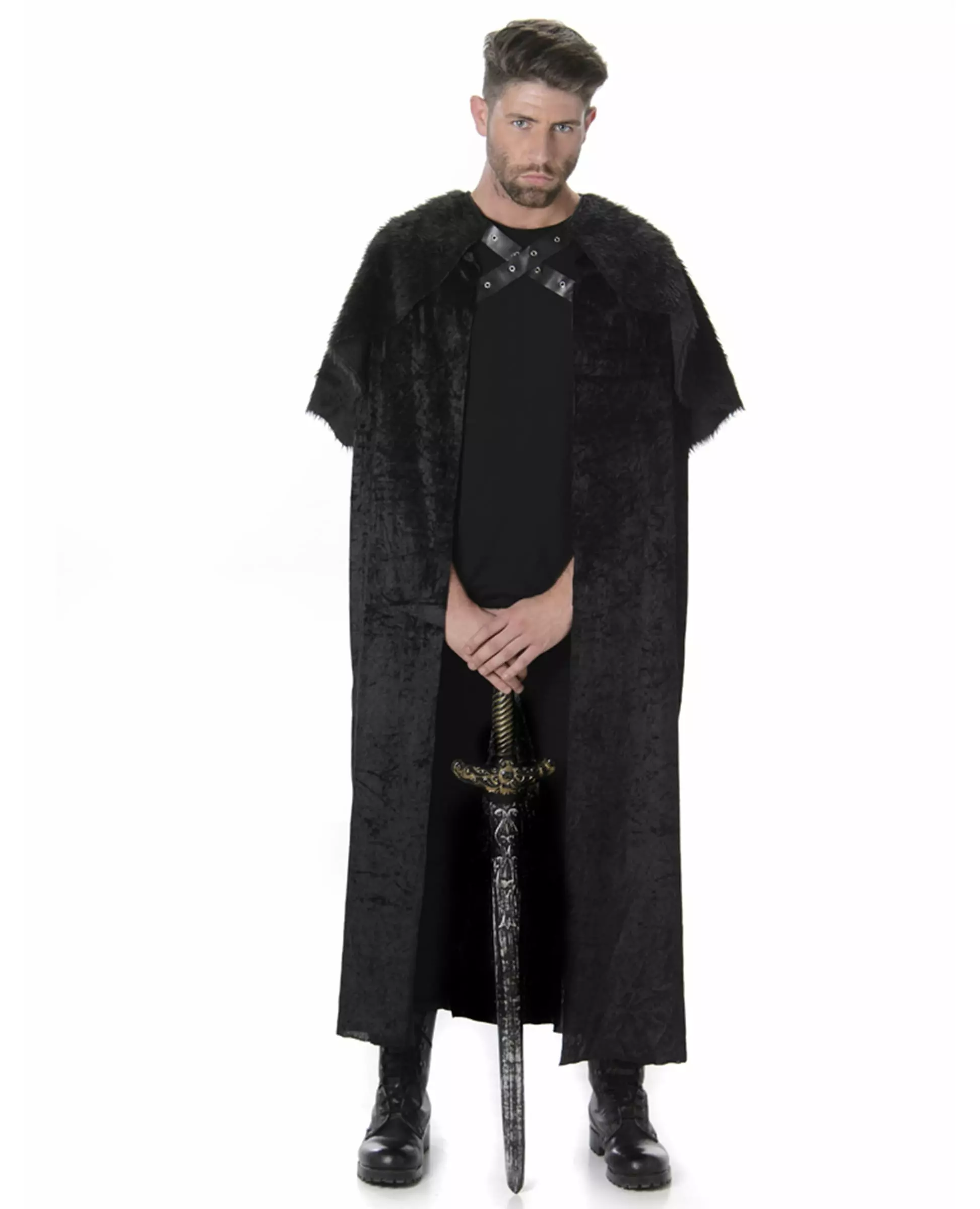 Spill som en middelalderridder eller en viking! Denne lange pelskappen for menn er svart (sverd og klær er ikke inkludert). Den er kuttet av et lett stoff og har to store biter fuskepels som faller over hver skulder. Du kan enkelt ta den på over hodet. To svarte bånd i fuskeskinn med jernmaljer er krysset og gir en mer komfortabel passform. Spill som en middelalderridder eller en vikingkriger for en temafest med venner! Inkludert tilbehør: Kappe Materiale: 100 % polyester Målinformasjon: Kappen, som passer til alle, måler omtrent 147 cm lang.