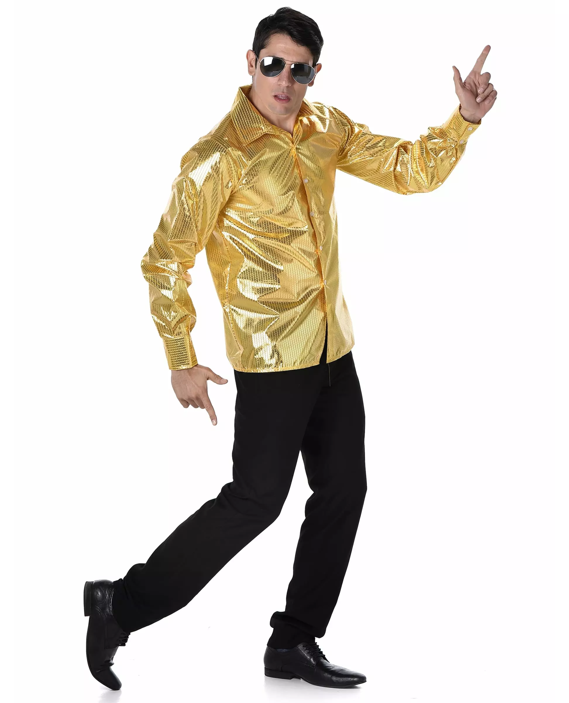 Herreskjorte med gullfarget paljetter og disko
