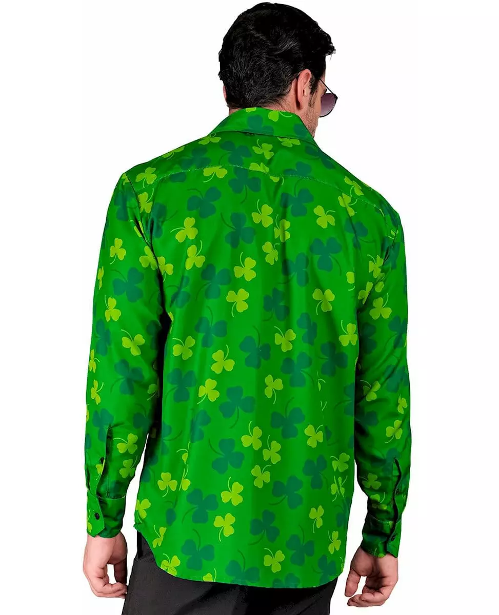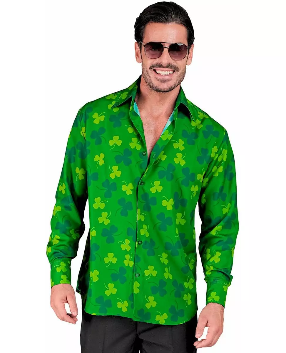 Vær stilig og heldig på St. Patricks dag! Denne grønne langermede voksenskjorten er dekorert med kløvermønstre for et festlig og originalt preg. Det lette stoffet og den komfortable passformen gjør den til et ideelt valg for en temafest eller en livlig feiring. Med sin klassiske krage og knappelukking kan den enkelt brukes med bukser eller jeans for en avslappet og festlig stil. Perfekt for å markere St. Patricks dag med eleganse og godt humør! Materiale: 100 % polyester. Inkludert tilbehør: 1 skjorte