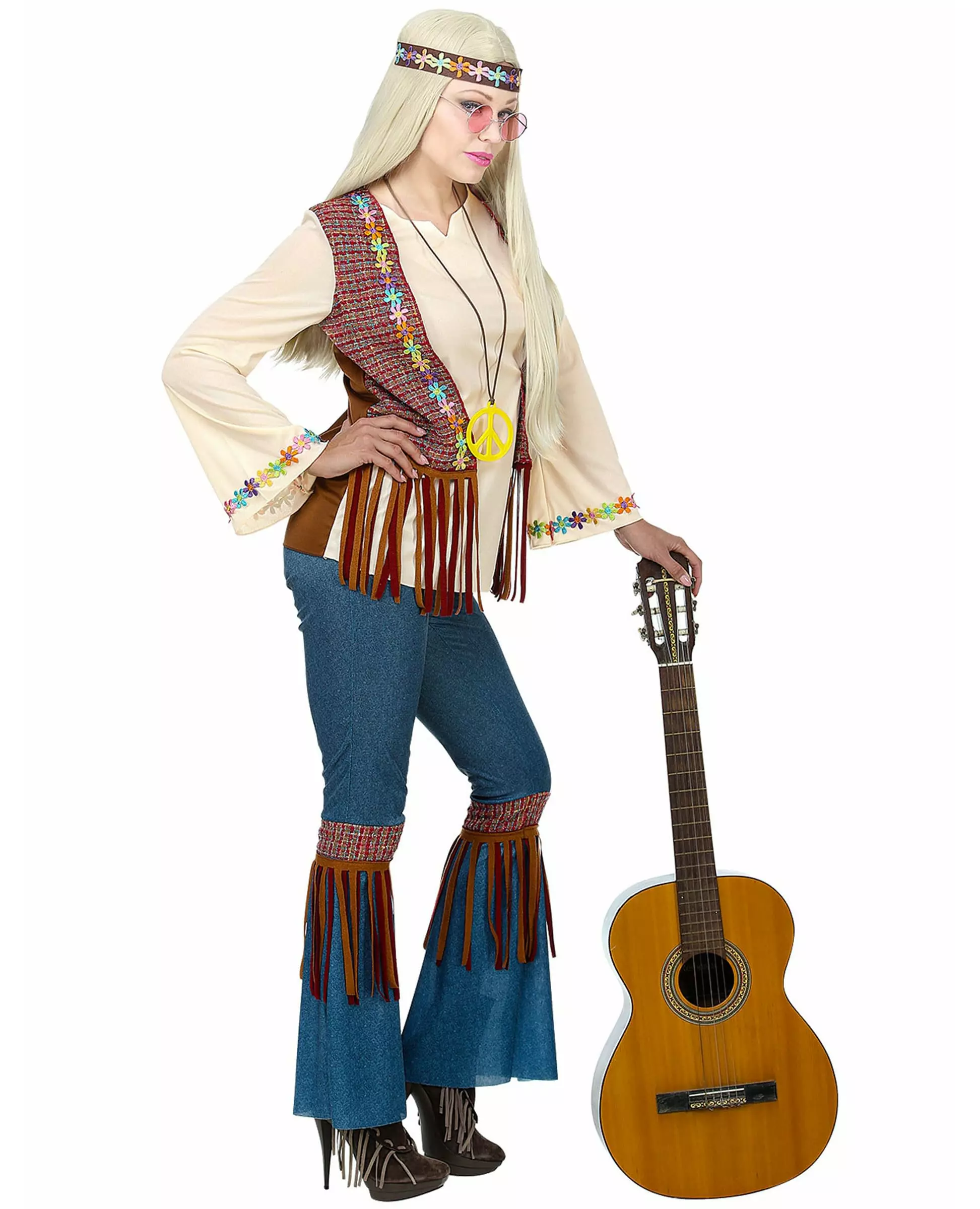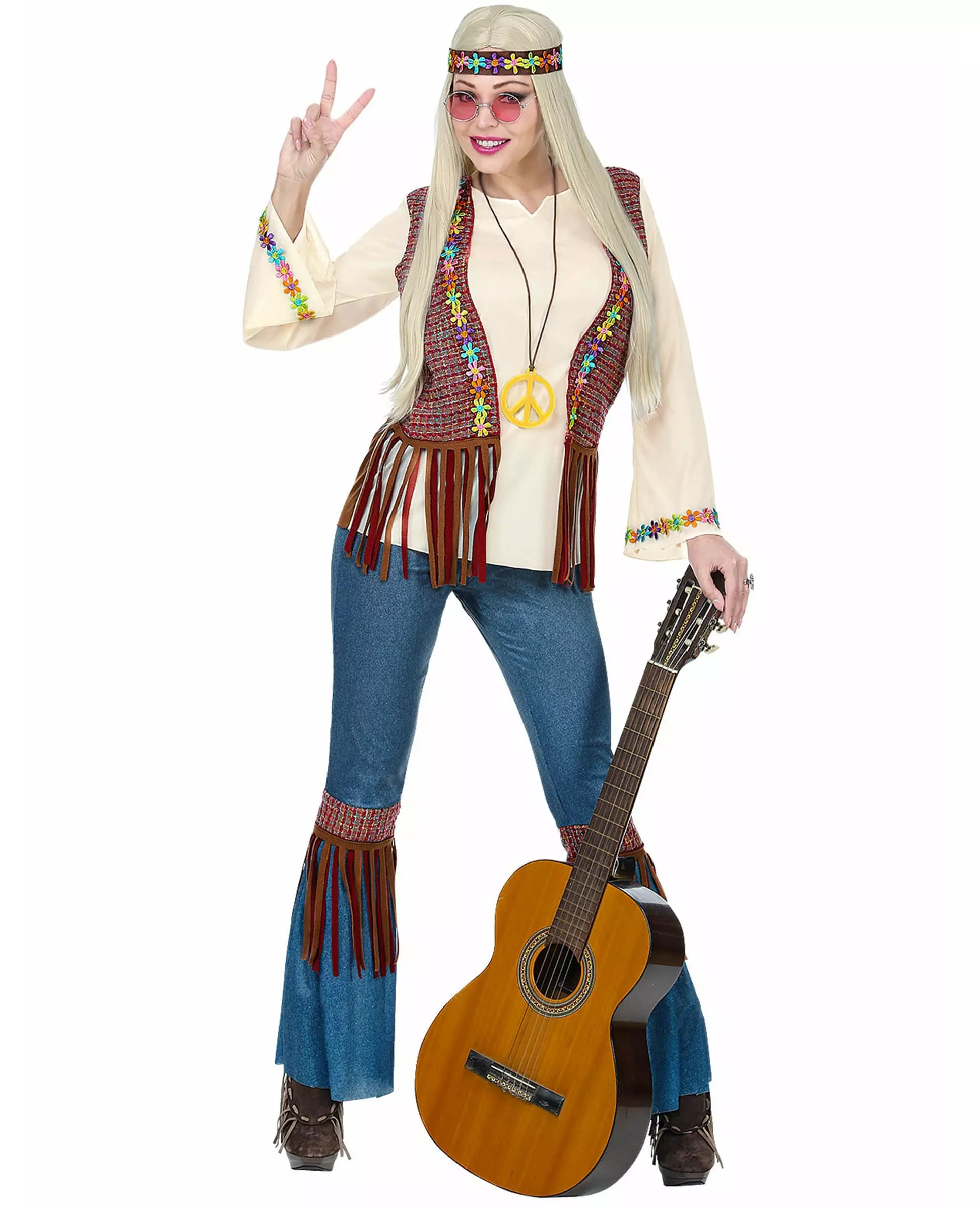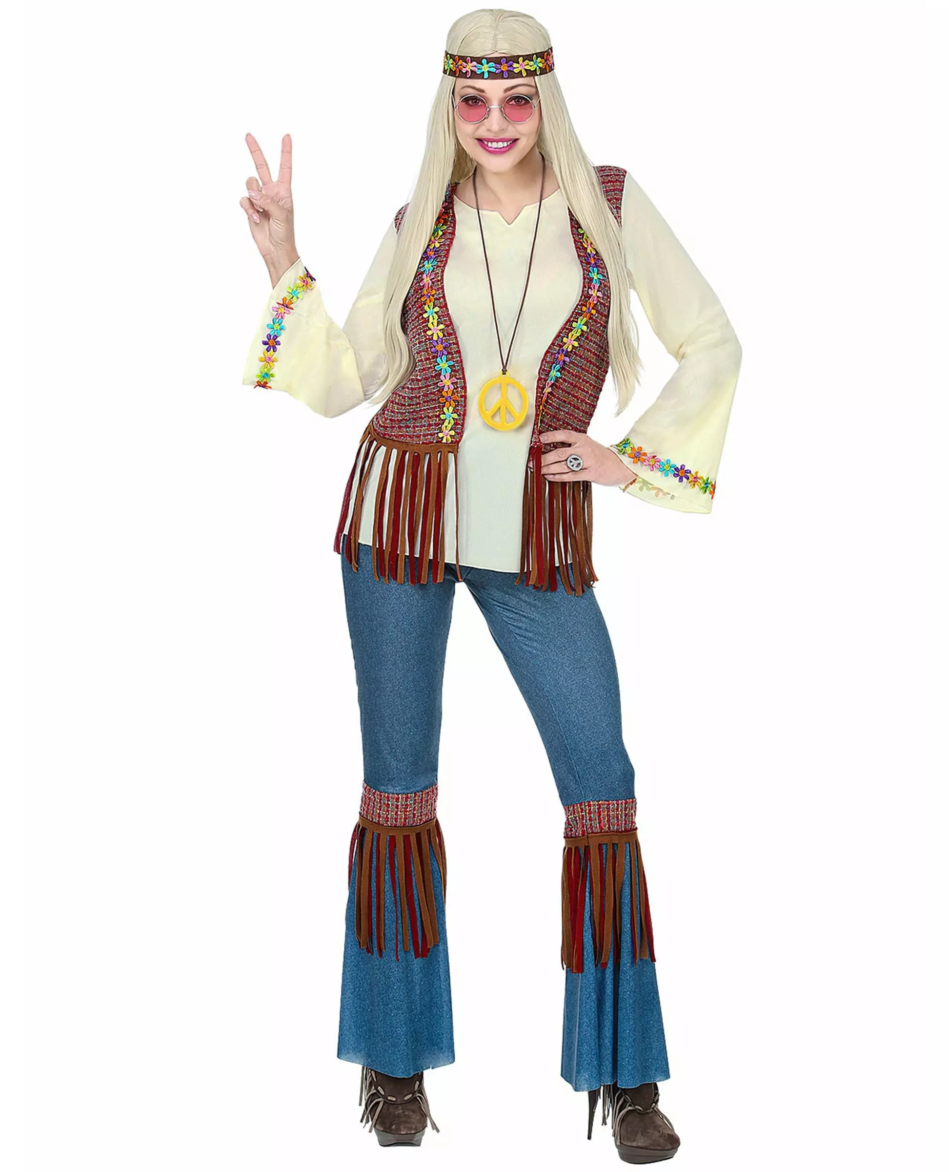 Voksenkostyme inkluderer: Topp med jakke, bukser, pannebånd og halskjede.