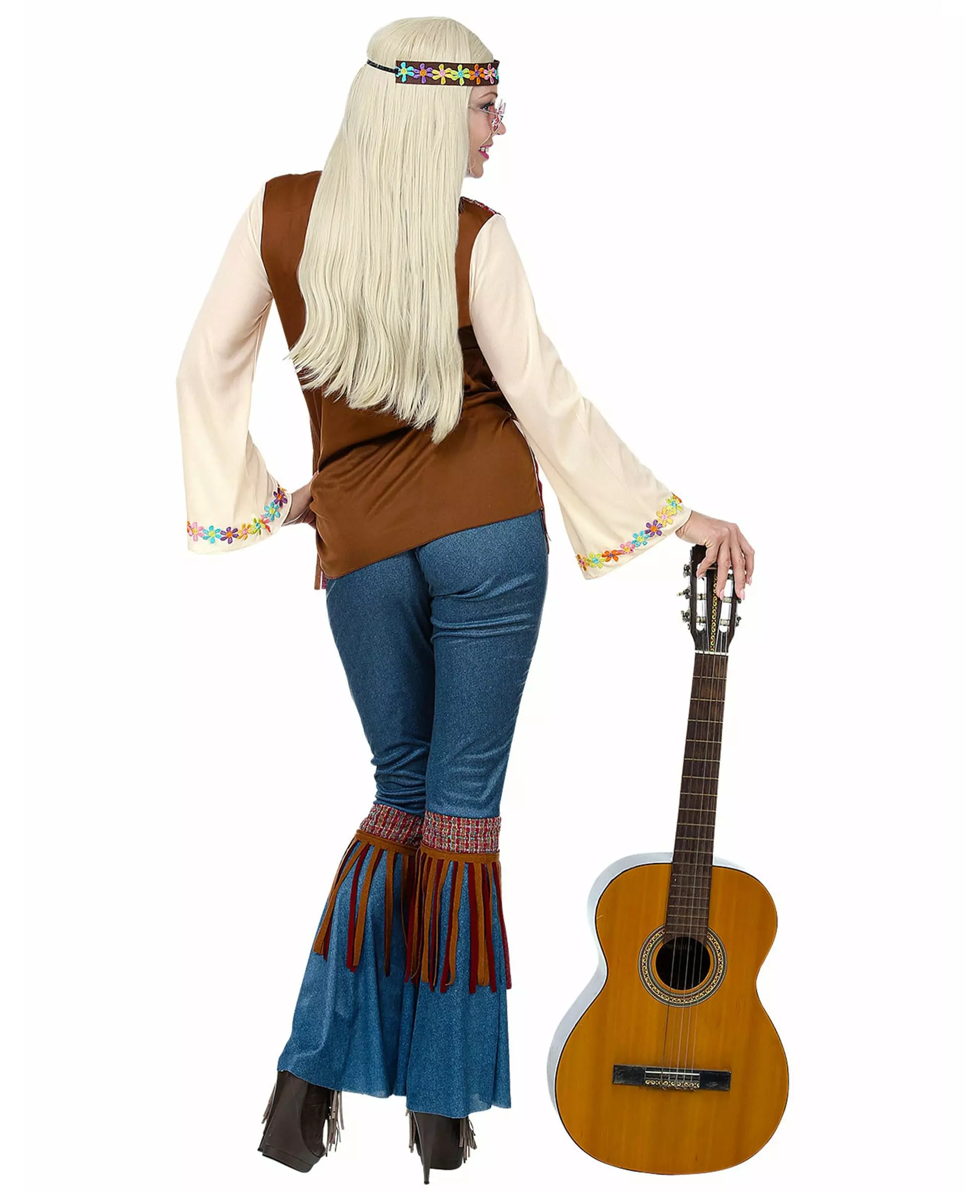 Voksenkostyme inkluderer: Topp med jakke, bukser, pannebånd og halskjede.