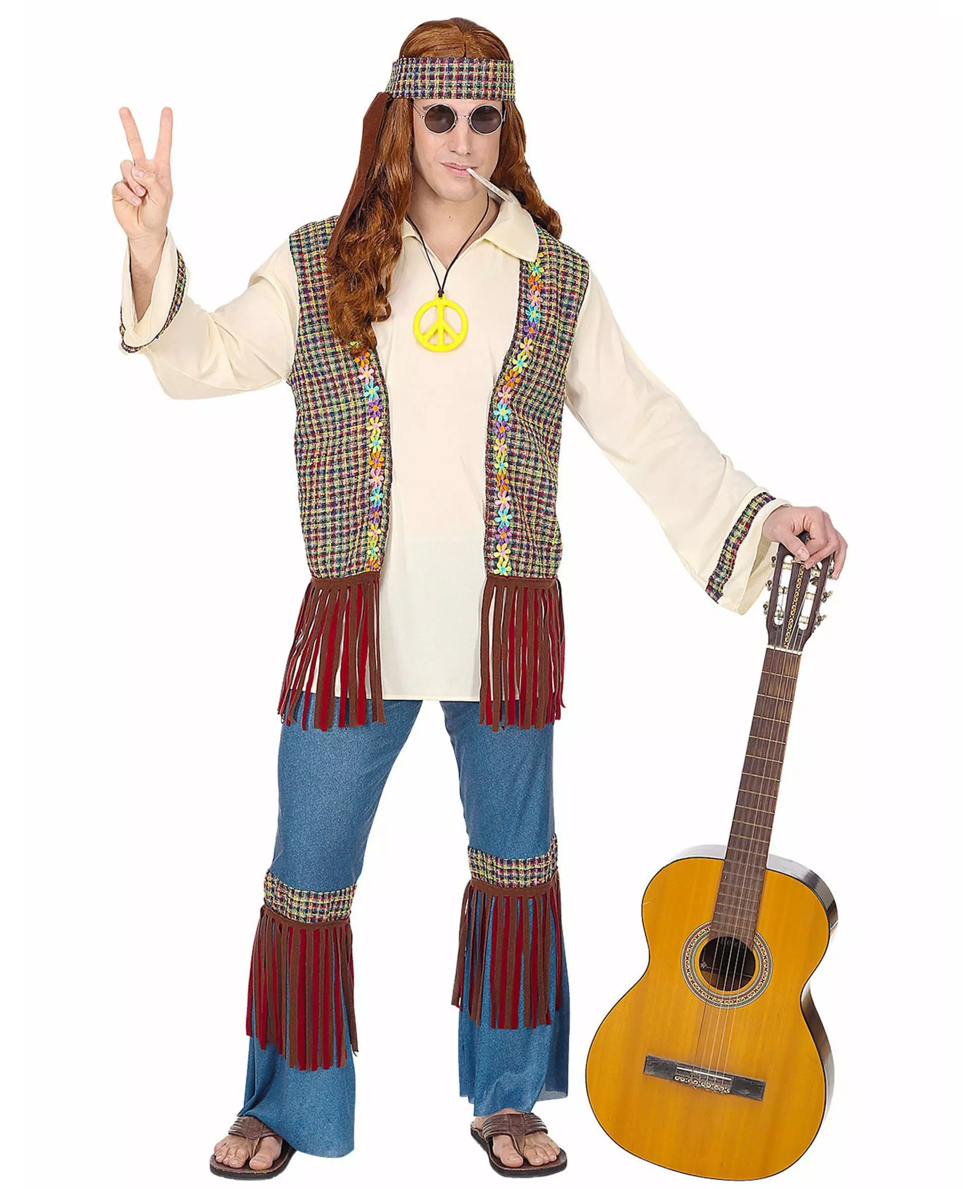 Voksenkostyme inkluderer: Skjorte med jakke, bukser, pannebånd og halskjede.