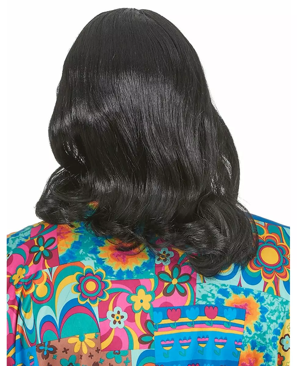 Mellomlangt hår! Denne herreparykken er rett og svart. Hippie-stil med mellomlangt hår (briller, medaljong, pannebånd og bluse er ikke inkludert). Den vil være det perfekte tilbehøret til alle kostymene dine til temafestene dine. Copyright Widmann SRL. Materiale: 100 % polyester