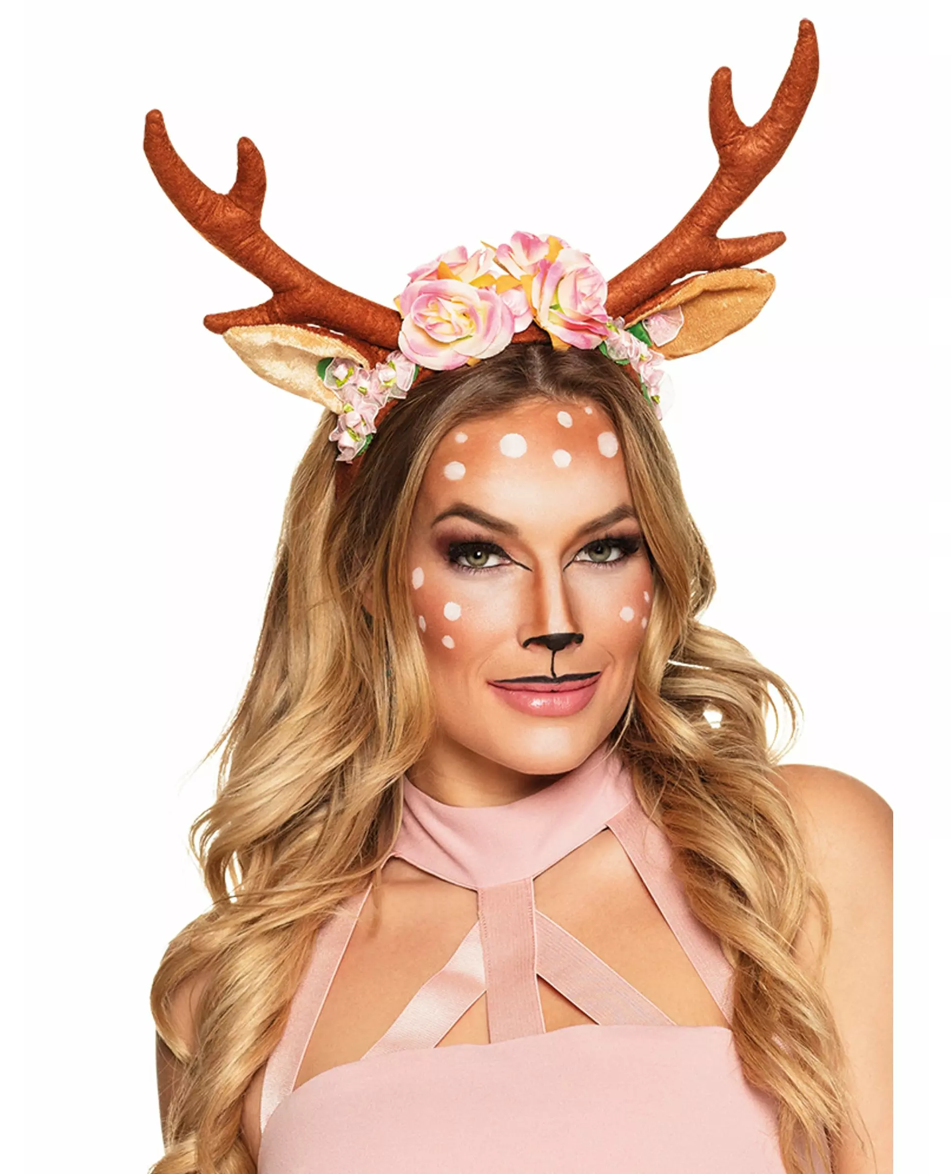 Min hjort! Dette lille hjortepannebåndet for kvinner er toppet med hjortehorn med store ører og er kronet med rosa blomster. Forvandle deg til en skognymfe eller legemliggjør Bambi for en kostymefest eller karneval, med dette hjortepannebåndet. Inkludert tilbehør: Pannebånd