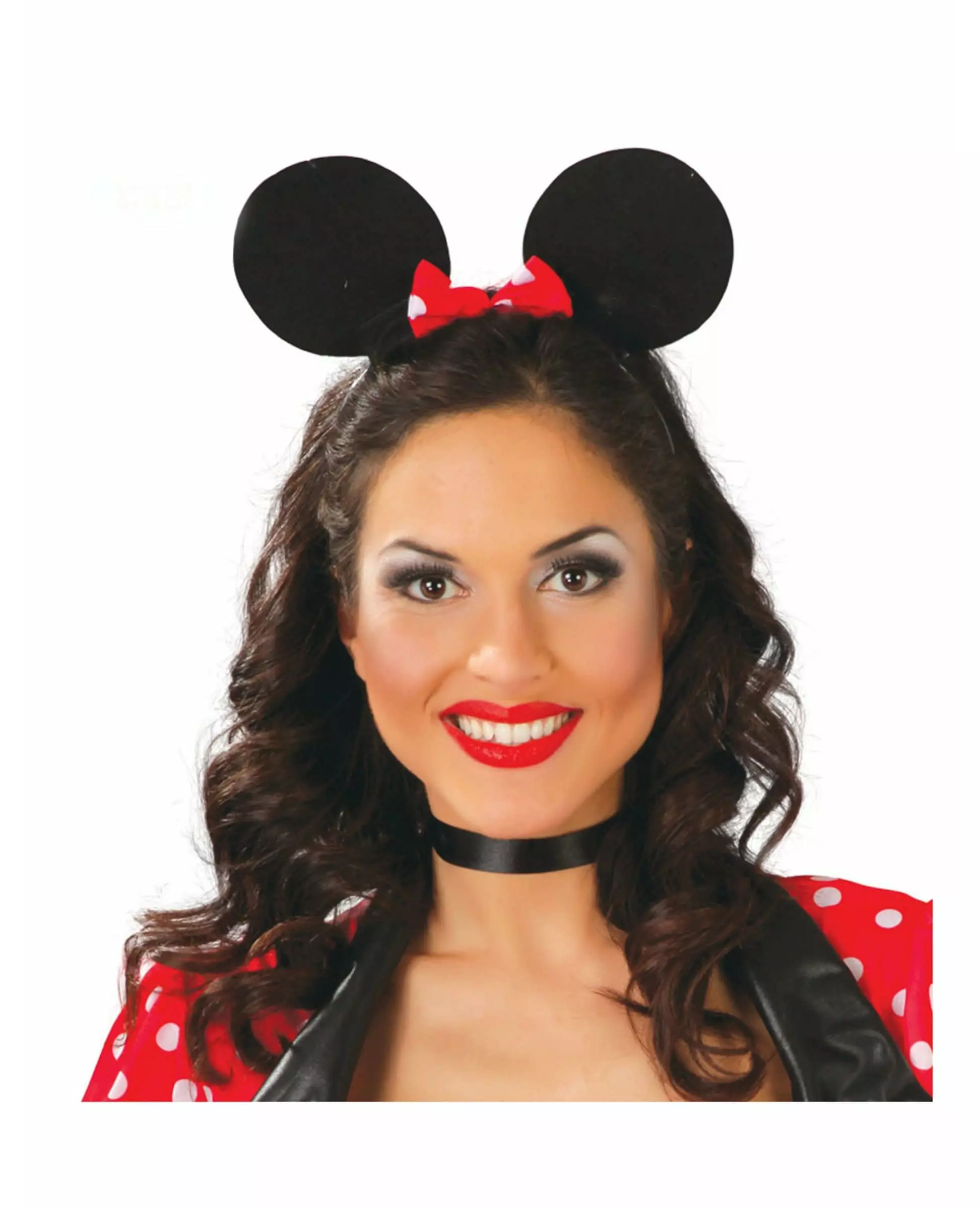 Forvandle deg til en rampete mus til karneval. Dette pannebåndet for voksne har runde museører. De er svarte med en rød sløyfe med hvite prikker i midten. Dette tilbehøret vil være ideelt for å fullføre et fint musekostyme til karneval eller en temafest med venner. Inkludert tilbehør: Pannebånd. Materiale: 100 % polyester.