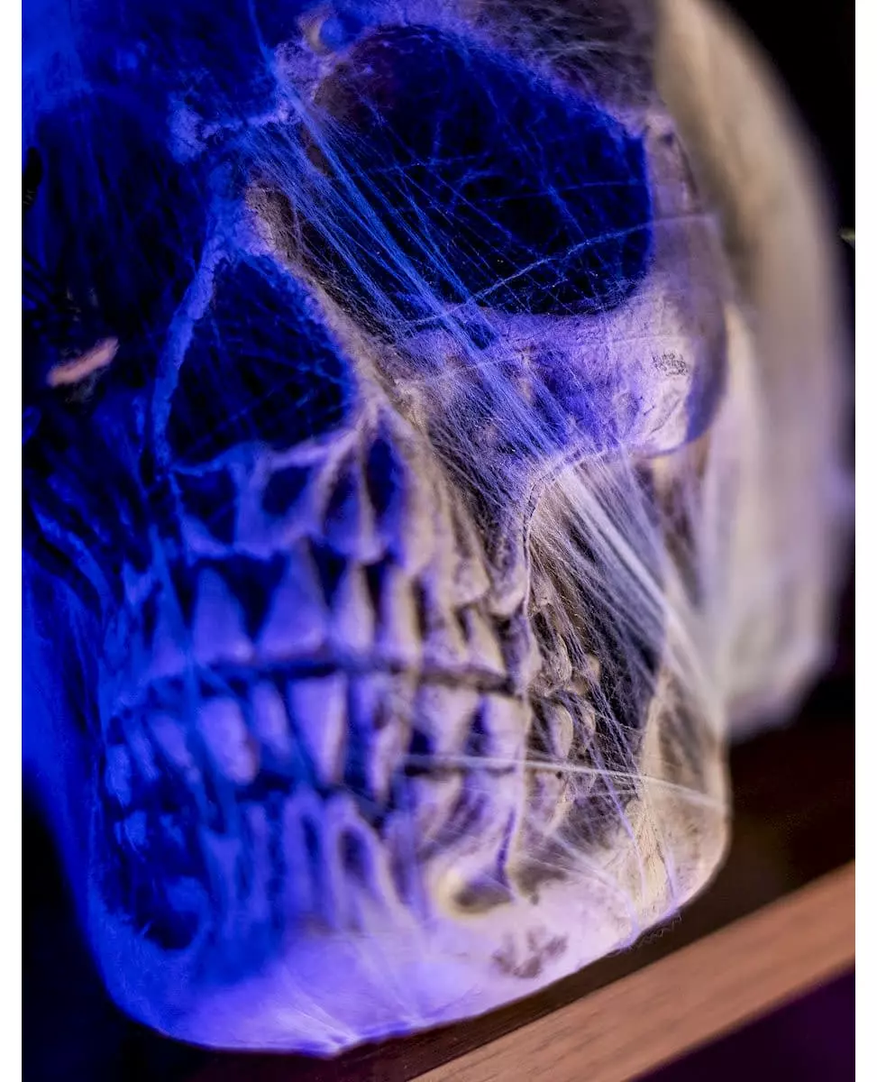 Hodeskalle og spindelvev Denne svært realistiske polystyrenhodeskallen er omgitt av spindelvev for en garantert uhyggelig effekt på bordet ditt under Halloween-måltidet!. Inkludert tilbehør: Hodeskalle Materiale: Polystyren
