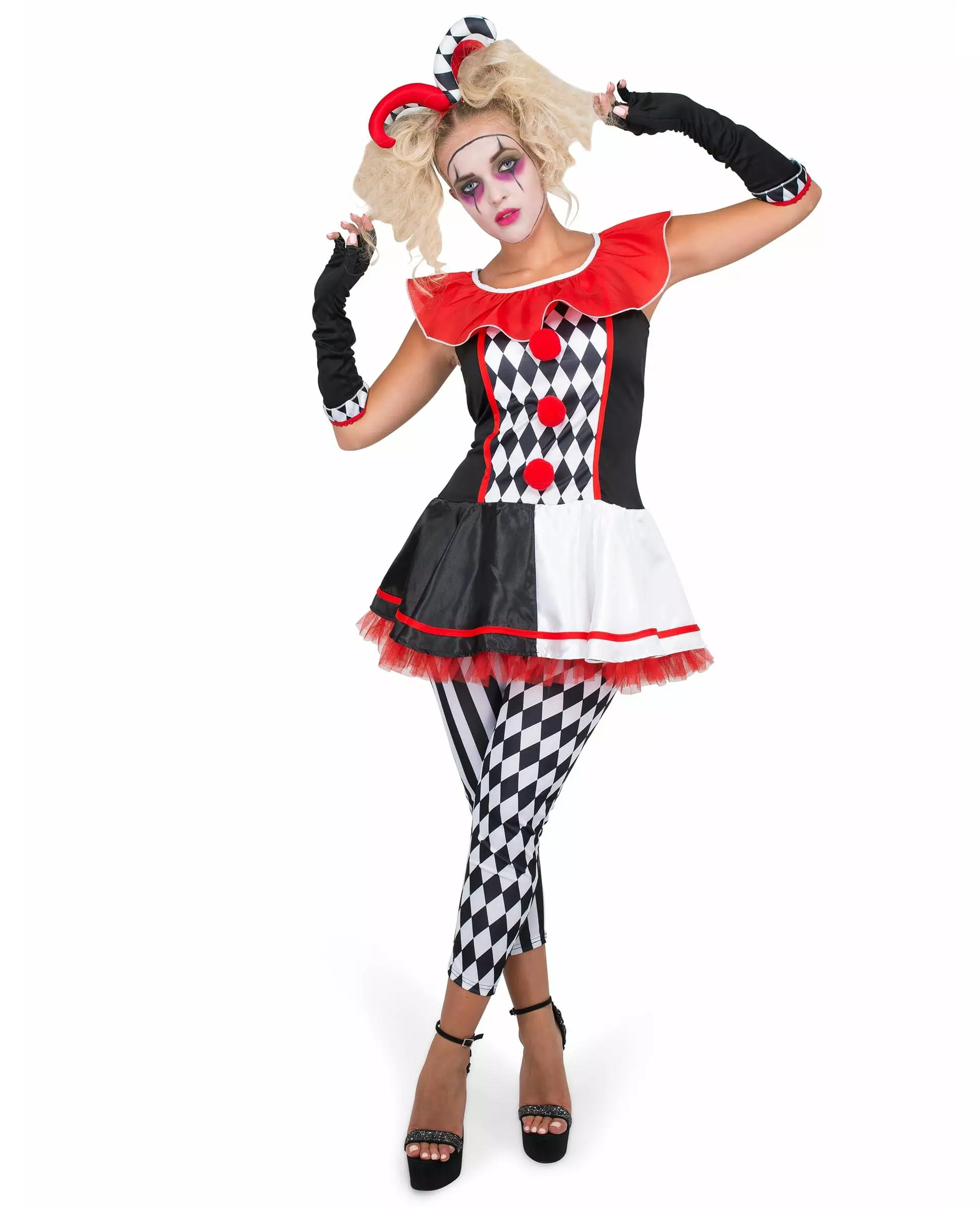 Gå inn i kongens hoff! Dette narrekostymet består av en kjole, leggings, et pannebånd og votter (sko ikke inkludert). Kjolen er kort og kommer i forskjellige farger: svart, rød og hvit. Den har et sjakkbretttrykk foran. Leggingsene er trykt med svarte og hvite striper på det ene benet og med svarte ruter på en hvit bakgrunn på det andre benet. Lange svarte votter og et pannebånd fullfører antrekket. Dette damesettet vil være ideelt for å underholde kongens hoff på et kostymearrangement som karneval! Inkludert tilbehør: Kjoleleggings Pannebånd Votter Materiale: 100 % polyester Vedlikehold: Håndvask