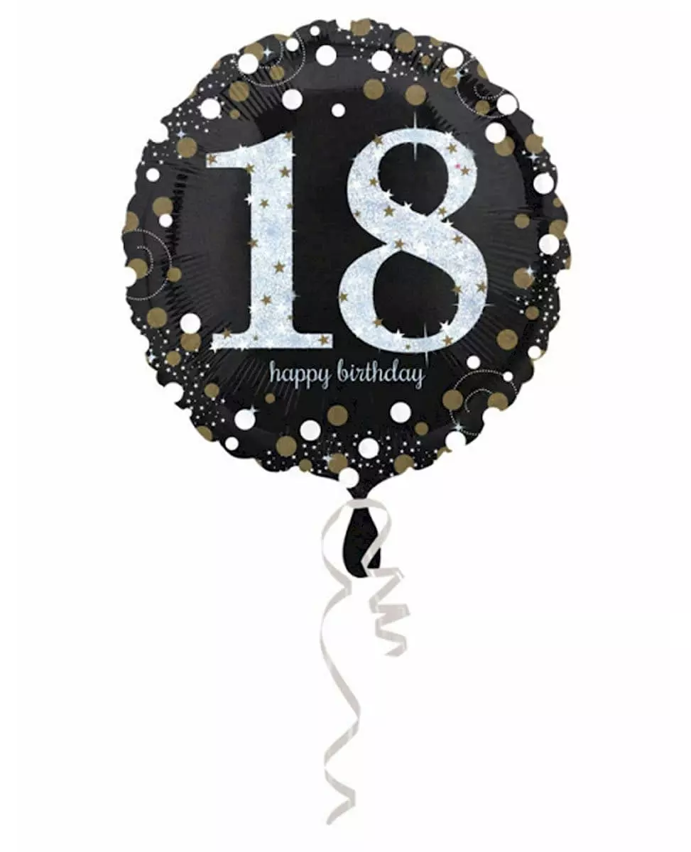 Holografisk folieballong med bursdagsmotiv, 18 år gammel