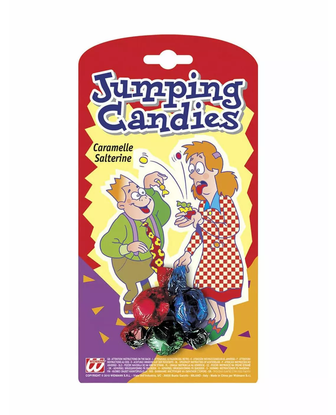 Overrask vennene dine! Dette settet består av 3 hoppende godterier. Bare tilby et av disse godteriene for å lure vennene dine og se dem hoppe når godterikilden dukker opp. Disse godteriene vil være perfekte for å spille et puss på vennene dine under alle omstendigheter. © Copyright Widmann SRL. Inkludert tilbehør: 3 hoppende godterier