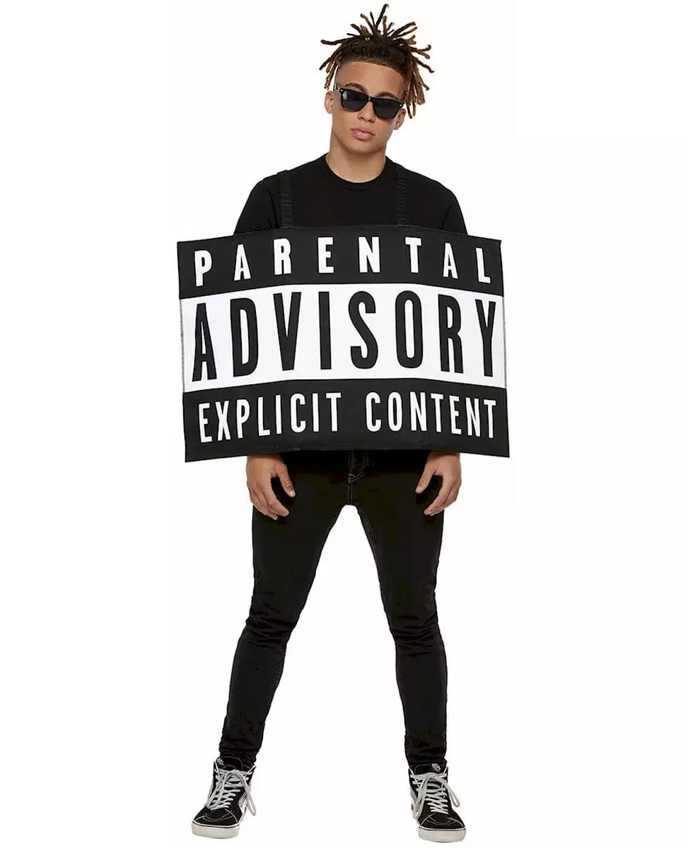 Vær oppmerksom på språkbruken! Dette humoristiske foreldrerådgivningskostymet er for voksne. Det inkluderer kun en brystbeskytter. Brystbeskytteren er hvit og svart i fargen og rektangulær i formen. Den inneholder inskripsjonen «Parental Advisory Explicit Content». Den er enkel å plassere ved hjelp av de to svarte stroppene som går over skuldrene. Dette kostymet vil være ideelt for å fullføre en humoristisk kveld med venner! Inkludert tilbehør: 1 brystbeskytter Materiale: 100 % polyester Pleie: Håndvask