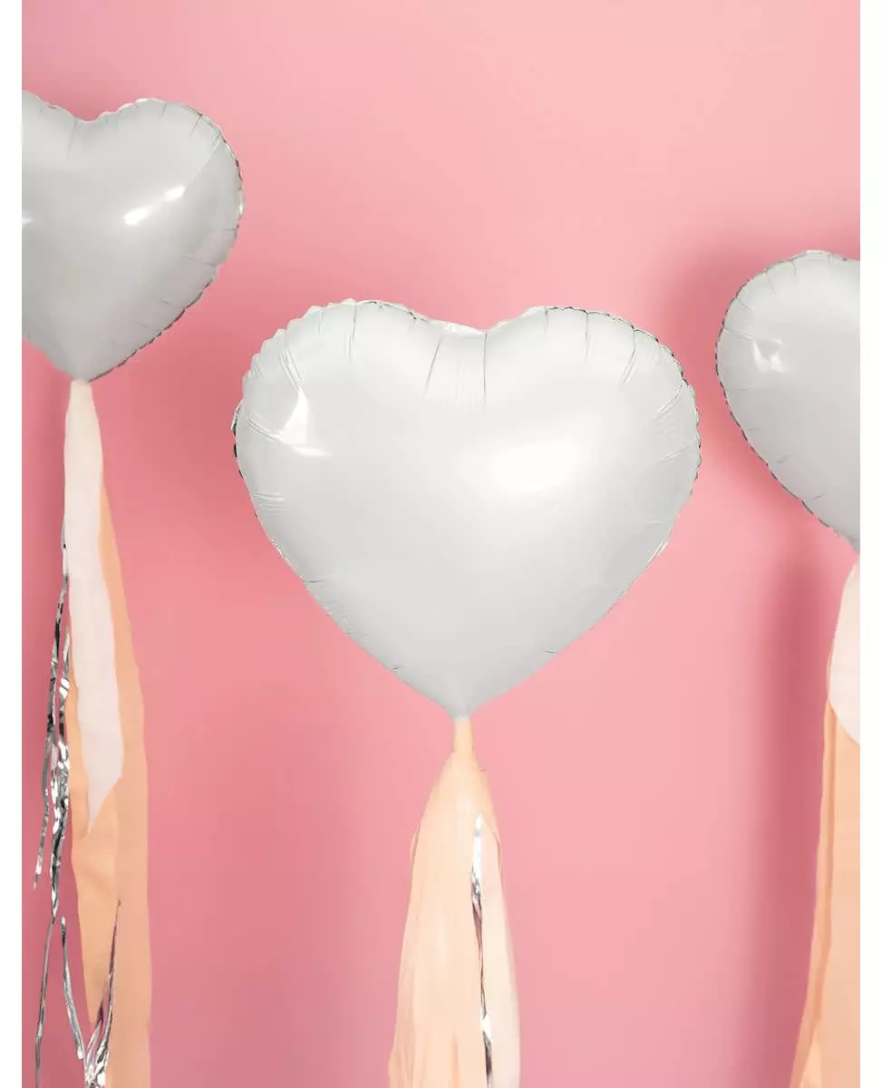 Et svevende hvitt hjerte! Hvit hjerteformet folieballong, ideell for å dekorere din romantiske kveld på Valentinsdagen. Denne ballongen kan blåses opp med helium eller en ballongpumpe og måler 45 cm. Unik festlogo. Materiale: Aluminium. Tilbehør inkludert - Ballong.