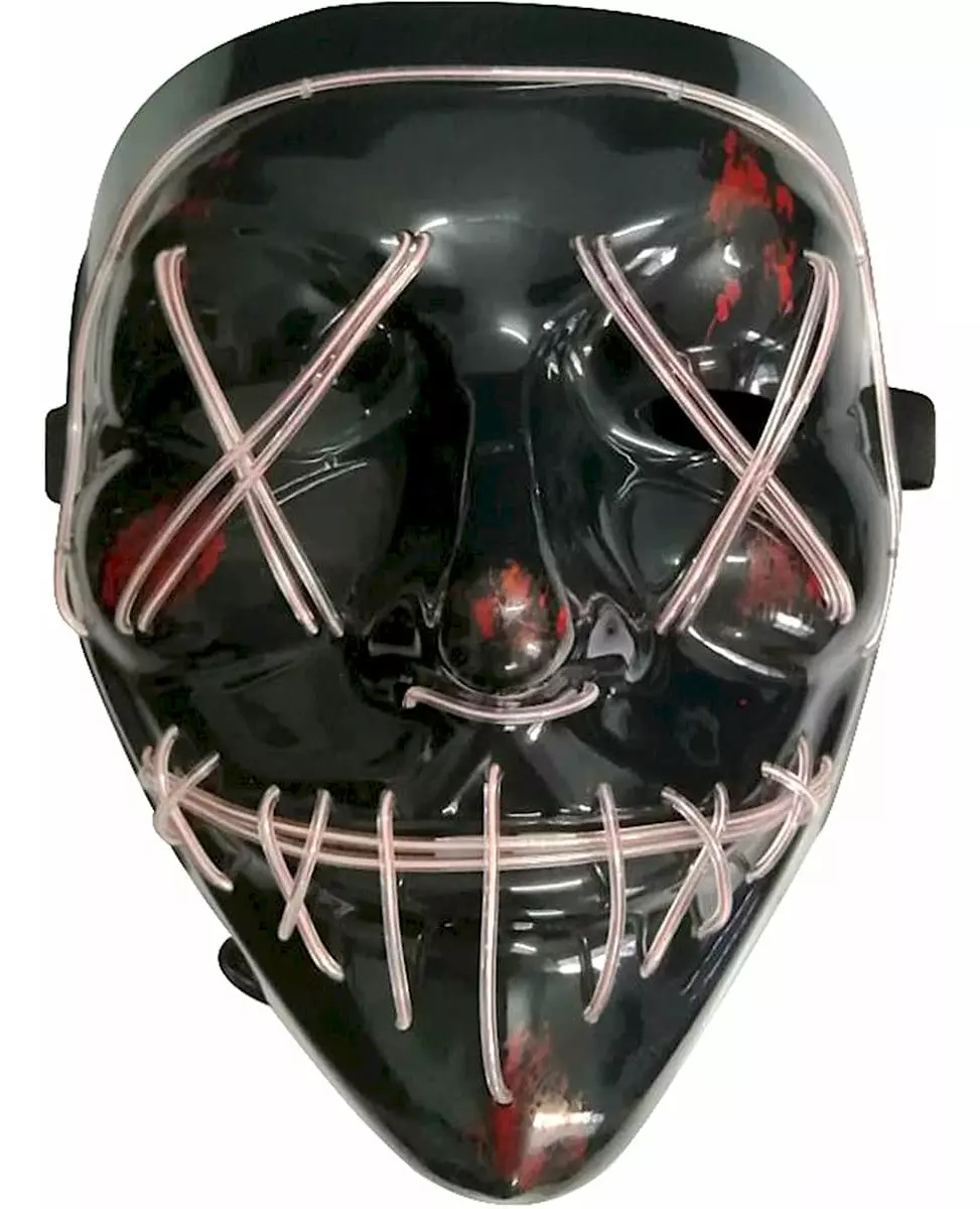 Gjør hjemmet ditt til en bunker de neste 12 timene, LED-masker er ute ... Denne hvite LED-masken er laget av slitesterk svart PVC med hvite LED-ledninger. Den er en voksenstørrelse som måler 20x18 cm. I fullt dagslys avslører den blodflekker over hele ansiktet ... men når natten faller på og masken er slått på, er det eneste som er synlig et ansikt bundet med hvite lysledninger. To kors i øyehøyde og et stort sydd smil ... skremmende, ikke sant? For å slå på masken er ingenting enklere, du trenger 2 AA-batterier (ikke inkludert i masken) som du plasserer i esken. Sistnevnte er koblet til masken takket være en meter lang ledning som gjør at den kan oppbevares i for eksempel en kleslomme! Du har 4 forskjellige lysmoduser: stabil (fast lys), langsom blinking, rask blinking og av. Ingen helseproblemer med denne masken, LED-ledningene avgir et kaldt lys og ingen varme. Du vil bli en stor suksess på Halloween-kvelden med denne hvite LED-masken. Vær forsiktig fra det øyeblikket sirenene lyder i gatene ... det er allerede for sent! Inkludert tilbehør: Hvit LED-maske