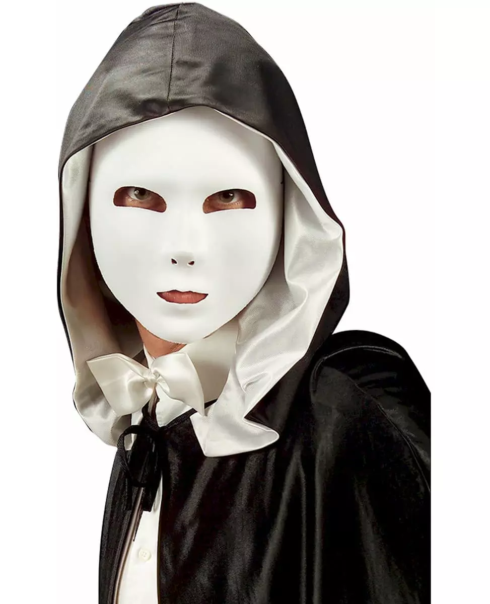 Rund maske! Denne masken for voksne er veldig enkel, hvit i fargen og rund i formen. Den er dekket av hvitt stoff og vil bli plassert i ansiktet ditt med en tynn hvit strikk. Den vil være det perfekte tilbehøret som vil gå ubemerket hen på de vakreste karnevalene. © Copyright Widmann SRL.