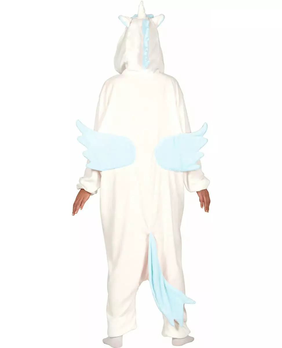 Mytisk dyr! Dette enhjørningskostymet for voksne består av en stor hettegenser. Den hvite jumpsuiten med blå mage lukkes med knapper foran. En lang hale med blått hestehår. Hetten representerer hodet til en enhjørning med store blå øyne. Dette kostymet vil være perfekt til karneval. Inkludert tilbehør: Hettegenser Materiale: 100 % polyester Vedlikehold: Håndvask