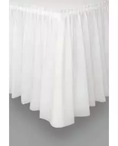 Dekk bordet ditt for en vellykket dekorasjon! Dette tynne plastbordskjørtet er hvitt. Det måler omtrent 73 x 426 cm og vil pynte enhver bordform (rund, firkantet eller rektangulær). Dette bordskjørtet vil være uunnværlig til et bryllup! Det vil også være perfekt til en dåp eller en babyshower! Unik festlogoMaterialeTynn plastTilbehør inkludert - Bordskjørt