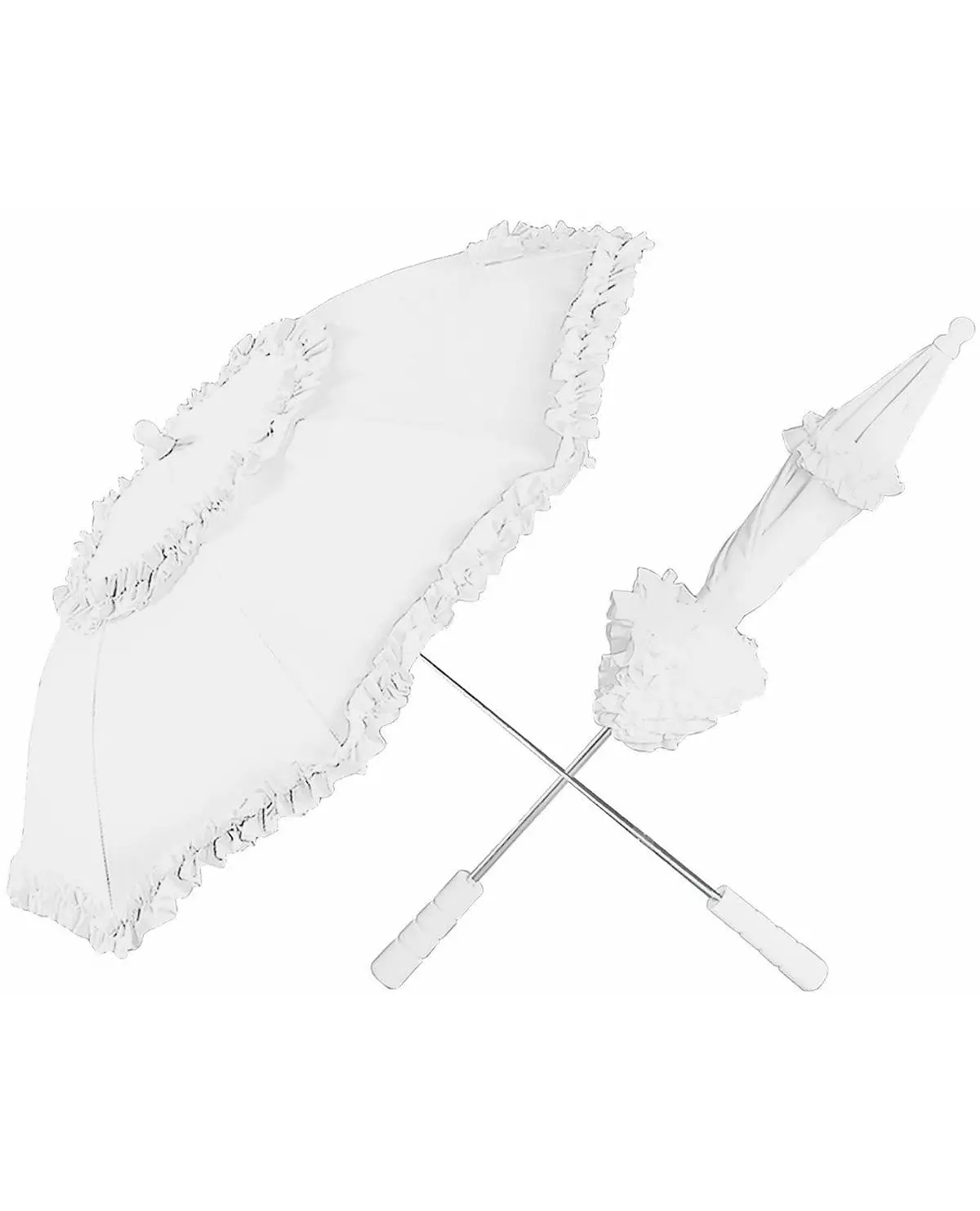 Gi kostymet ditt et elegant og raffinert preg! Denne hvite parasollen for voksne er laget av hvitt stoff og dekorert med to rader med hvite rysjer. Den måler omtrent 64 cm i diameter og 64 cm i høyden. Dette tilbehøret vil være perfekt for å fullføre kostymet ditt til en Belle Époque-temafest eller til karneval. Laget i Spania. Inkludert tilbehør: Paraply