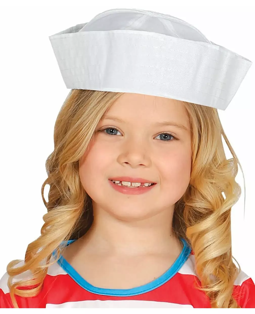 Det var et lite skip ... Denne pene hvite sjømannshatten er for barn. Dette hodeplagget vil være perfekt som tilbehør til et lite sjømannsantrekk, til karneval eller til en kostymefest. Inkludert tilbehør: Hattpleie: Håndvask