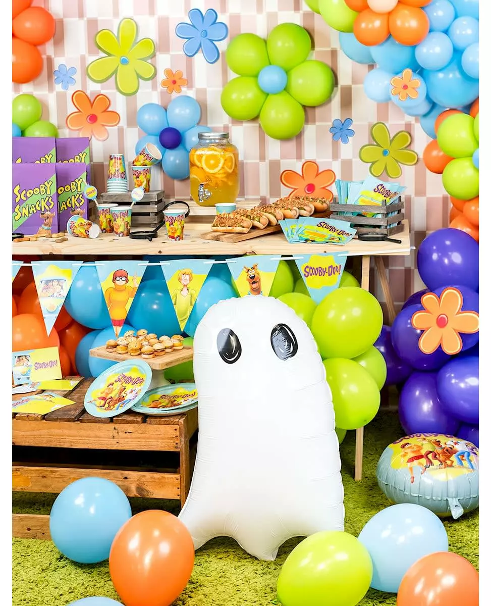 Buu! Denne ballongen er laget av hvit aluminium. Den forestiller et lite hvitt spøkelse med store, svarte øyne. Ballongen måler omtrent 48 x 68 cm. Den vil være perfekt for å legge til et snev av søt dekorasjon til den skumle romdekorasjonen din til Halloween! Inkludert tilbehør: 1 ballong Materiale: Aluminium