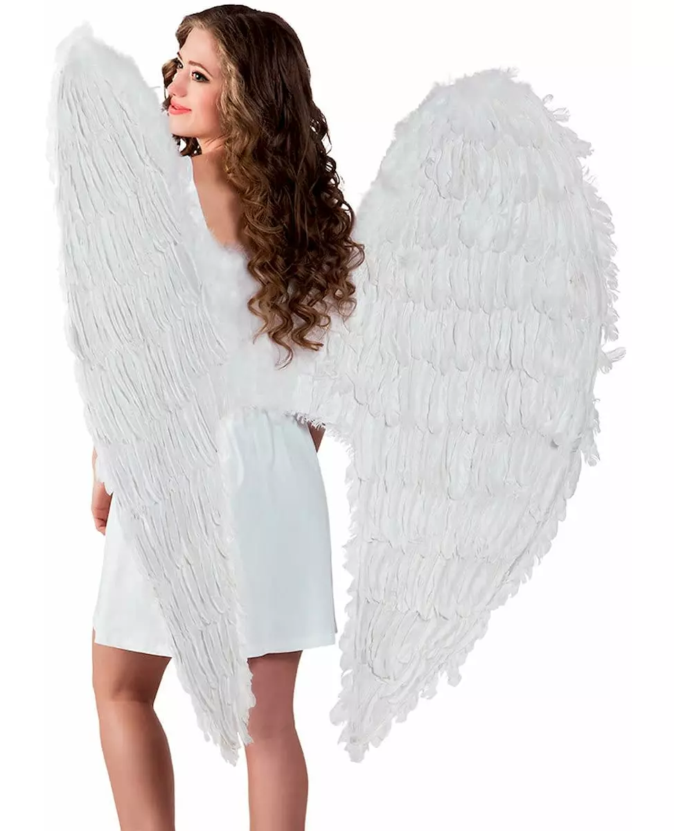 Med disse gigantiske hvite vingene vil du ikke gå ubemerket hen i julen. Dette paret englevinger er for voksne. De er gigantiske i størrelse og måler omtrent 120 x 120 cm. De er dekket av fjær og fjær, og er helt hvite. De vil være perfekte for å fullføre englekostymet ditt under for eksempel slutten av året. Inkludert tilbehør: Vinger