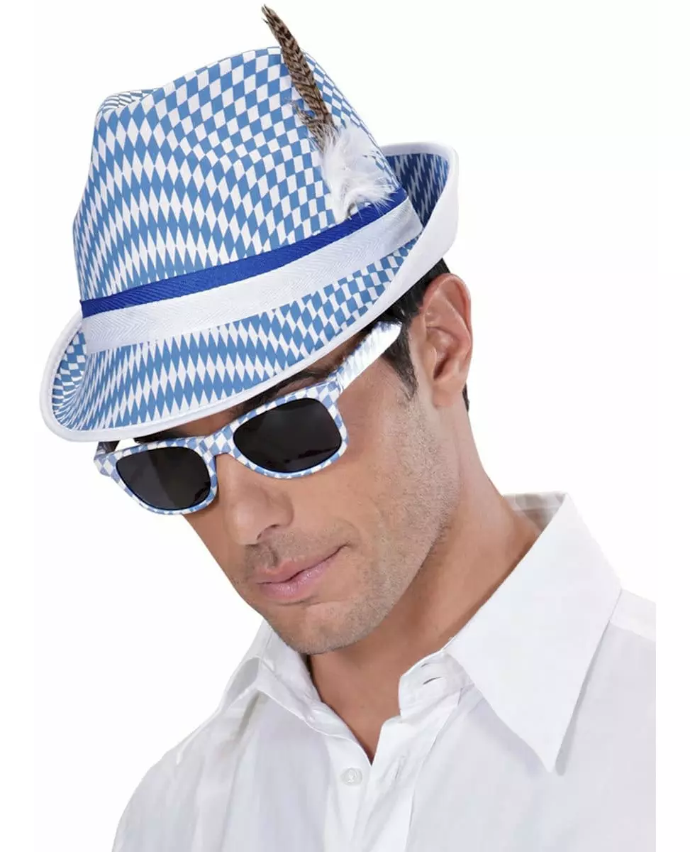 Feir Oktoberfest med denne bayerske hatten. Disse bayerske brillene for voksne er laget av plast. De er trykt med blå og hvite ruter. De har også tonede plastlinser for å imitere solbriller. Disse bayerske brillene vil være perfekte for å delta på Oktoberfest. © Copyright Widmann SRL. Inkludert tilbehør: Briller Materiale: Plast