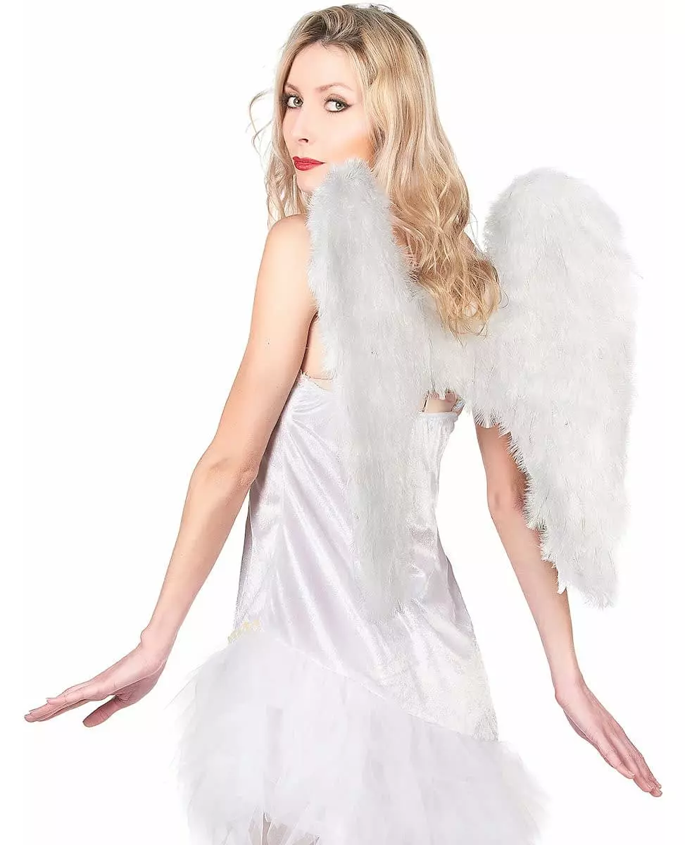 Ryggfestesystem! Disse hvite englevingene for voksne måler 26 x 50 cm. Vingene bæres som en ryggsekk og har to elastiske bånd som kan festes rundt skuldrene (kostyme ikke inkludert). Disse vingene er dekorert med en plastramme. Fjærene som er limt på dem er laget av syntetisk materiale. Ideelt tilbehør for å fullføre et kostyme til avslutningsfester eller til et karneval. Inkludert tilbehør: 1 par vinger Materiale: Syntetisk/plast