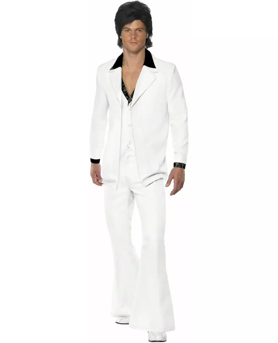 Elegant kostyme! Dette discokostymet inkluderer hvite bukser med elastisk midje som lukkes med glidelås og knapp. En hvit jakke er også inkludert. Den har skulderstropper for god passform på skuldrene. En falsk hvit og svart skjorte er sydd inni. Dette kostymet vil gjøre deg til discokongen!. Inkludert tilbehør: Jakke Bukser Materiale: Polyester Stell: Håndvask