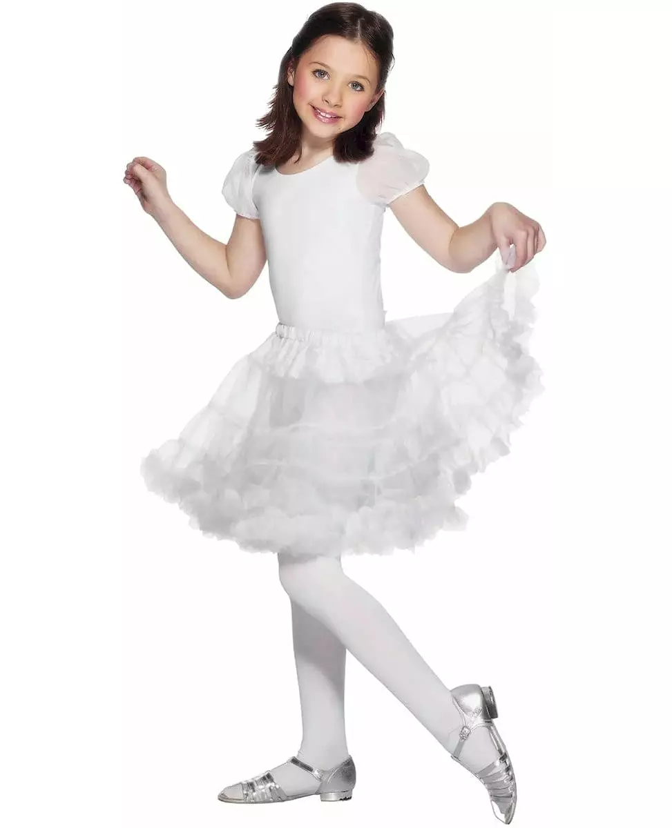 Stilig! Vakkert hvitt skjørt for jenter, kort skjørt med blonder. Finnes i én størrelse. Perfekt for å fullføre kostymet ditt for kvelder med venner. Inkludert tilbehør: Underskjørt Materiale: 100 % polyester Pleie: Håndvask