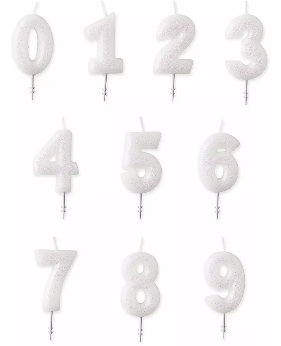 Et skinnende talllys for å personliggjøre kaken din! Dette talllyset selges enkeltvis; Du kan velge et tall mellom 0 og 9. Dette lyset er hvitt i fargen med pent iriserende glitter. De måler omtrent 6,5 cm i høyden. Et perfekt lys for å dekorere bursdagskaken din. Inkludert tilbehør: 1 talllys