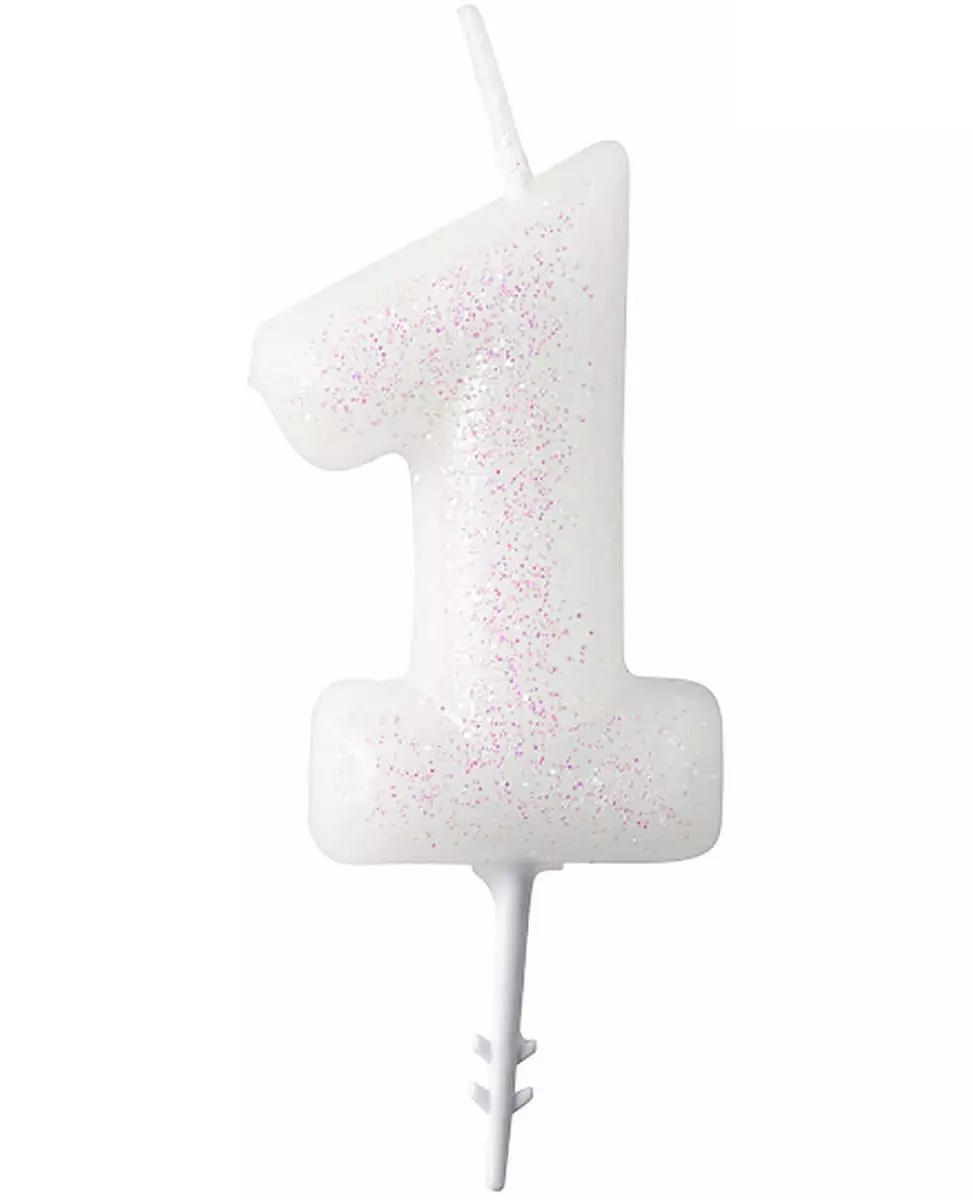 Et skinnende talllys for å personliggjøre kaken din! Dette talllyset selges enkeltvis; Du kan velge et tall mellom 0 og 9. Dette lyset er hvitt i fargen med pent iriserende glitter. De måler omtrent 6,5 cm i høyden. Et perfekt lys for å dekorere bursdagskaken din. Inkludert tilbehør: 1 talllys