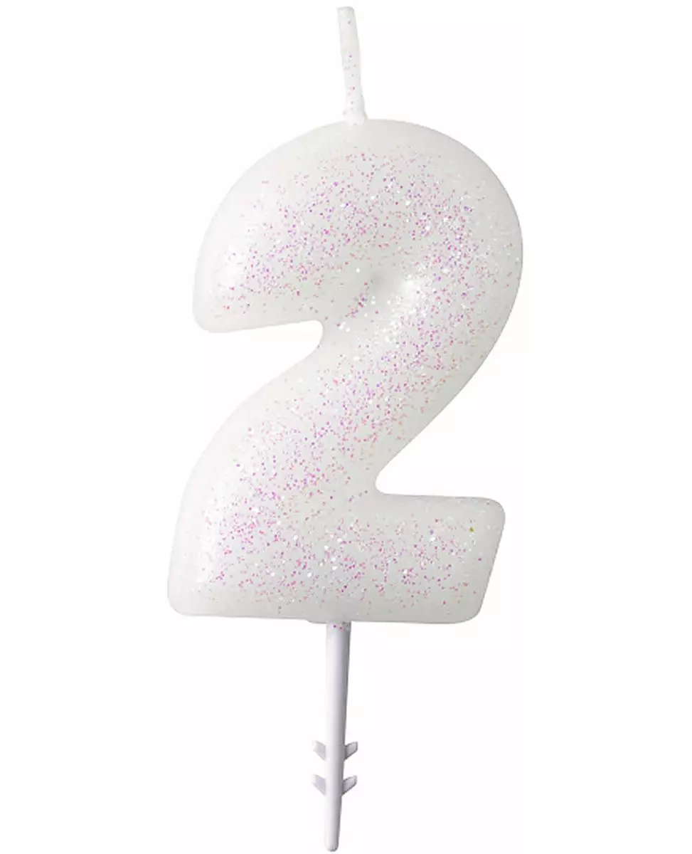 Et skinnende talllys for å personliggjøre kaken din! Dette talllyset selges enkeltvis; Du kan velge et tall mellom 0 og 9. Dette lyset er hvitt i fargen med pent iriserende glitter. De måler omtrent 6,5 cm i høyden. Et perfekt lys for å dekorere bursdagskaken din. Inkludert tilbehør: 1 talllys