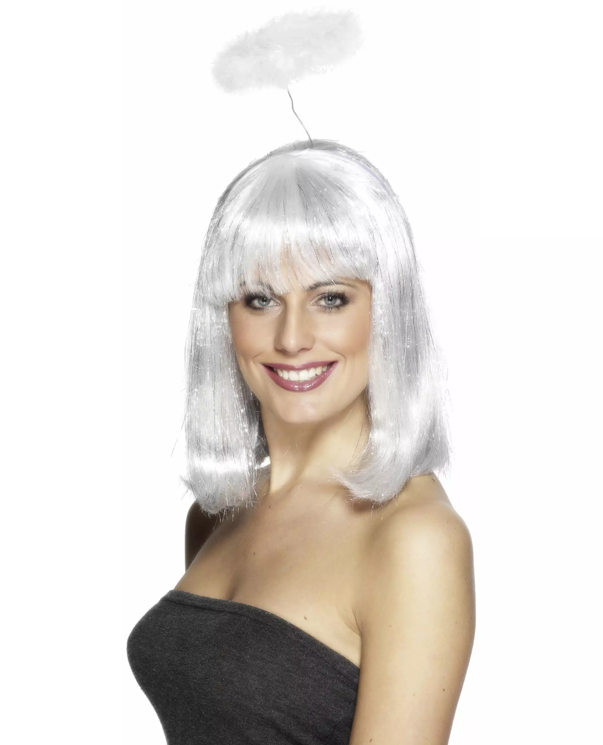 Passer til en rekke hoder! Dette pannebåndet er laget av gjennomsiktig plast med en glorie av hvite kunstfjær. Sistnevnte, montert på en metallramme, kan orienteres slik du ønsker. Dette tilbehøret er perfekt for å fullføre englekostymet ditt til en kostymefest!. Inkludert tilbehør: Pannebånd Materiale: Syntetisk