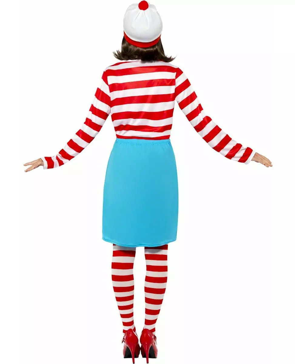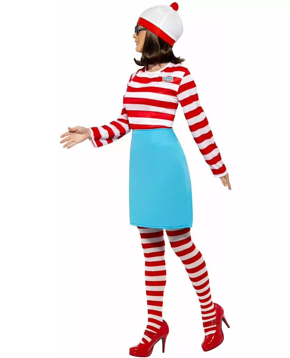Strømper og hatt inkludert! Dette offisielle Where's Wally™-kostymet for kvinner består av en rød og hvit stripete topp med lange, elastiske ermer som passer alle kroppsformer. Antrekket inkluderer også et elastisk turkis skjørt, samt et par stripete strømpebukser og en matchende hatt og et par briller for å fullføre karakteren. Dette kostymet vil være perfekt for å underholde vennene dine på temafester med venner eller andre utkledningsarrangementer. Inkludert tilbehør: T-skjorte, skjørt, strømpebukser, hatt, briller. Materiale: 100 % polyester. Pleie: Håndvask.