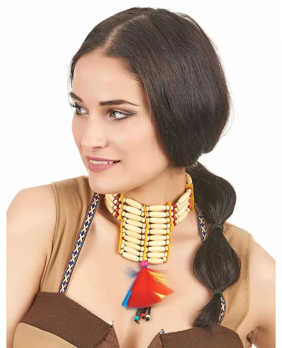 Som om det var håndlaget! Dette vakre indiske halskjedet er for voksne og består av flere rekker med perler i forskjellige farger. I midten er det flerfargede fjær. Halskjedet skal knytes rundt halsen og vil være perfekt som tilbehør til ditt indiske kostyme til for eksempel karneval. Inkludert tilbehør: 1 halskjede