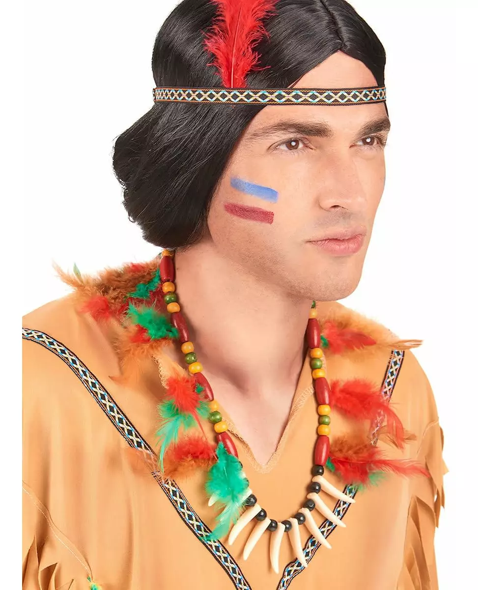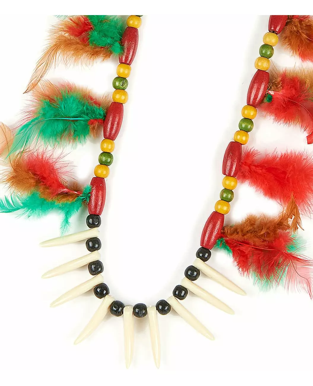 Pynt opp det indiske kostymet ditt på en original og fargerik måte. Dette indiske halskjedet er laget av treperler. Disse finnes i forskjellige farger og er komplett med grønne og røde fjær. Dette halskjedet er perfekt for å pynte opp et indisk kostyme og gi det mer virkelighet under western-tema kostymefester. Inkludert tilbehør: Halskjede