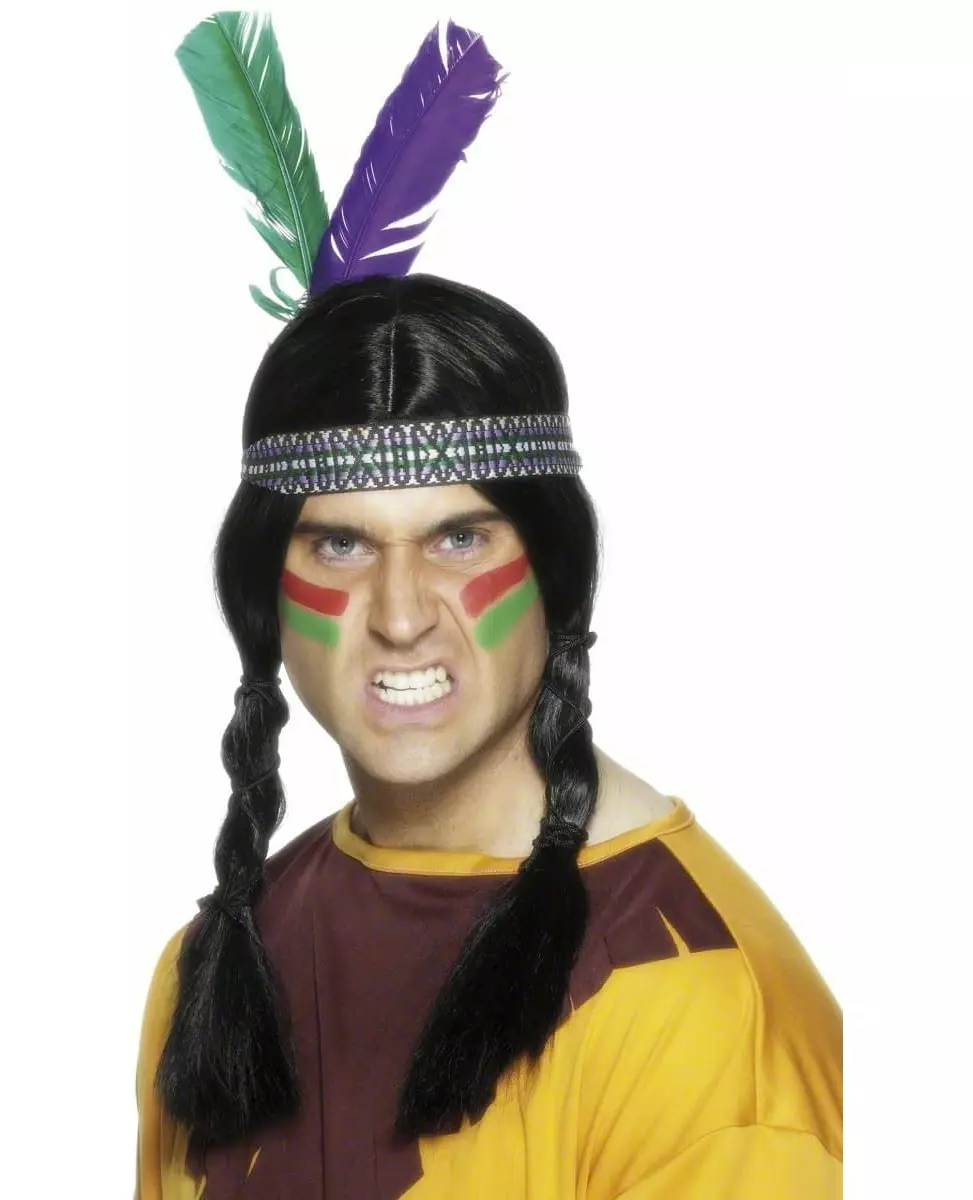 Med 2 fjær! Dette indiske pannebåndet for voksne består av et stoff- og elastisk pannebånd med indiske mønstre hvor det er festet 2 fjær (en grønn og den andre lilla). Dette tilbehøret er ideelt for å fullføre dine indiske kostymer og parykker. Inkludert tilbehør: Pannebånd