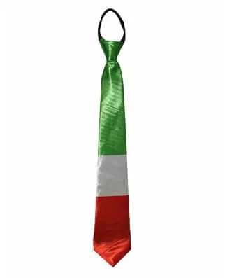 Italiensk stil er din! Dette slipset i Italias farger måler omtrent 45 cm. Det festes og justeres med en glidelås som åpnes for å forstørre halsbåndet og lukkes for å redusere det. Vis frem fargene dine ned til minste detalj på sportsbegivenheter eller temafester. Inkludert tilbehør: Slips